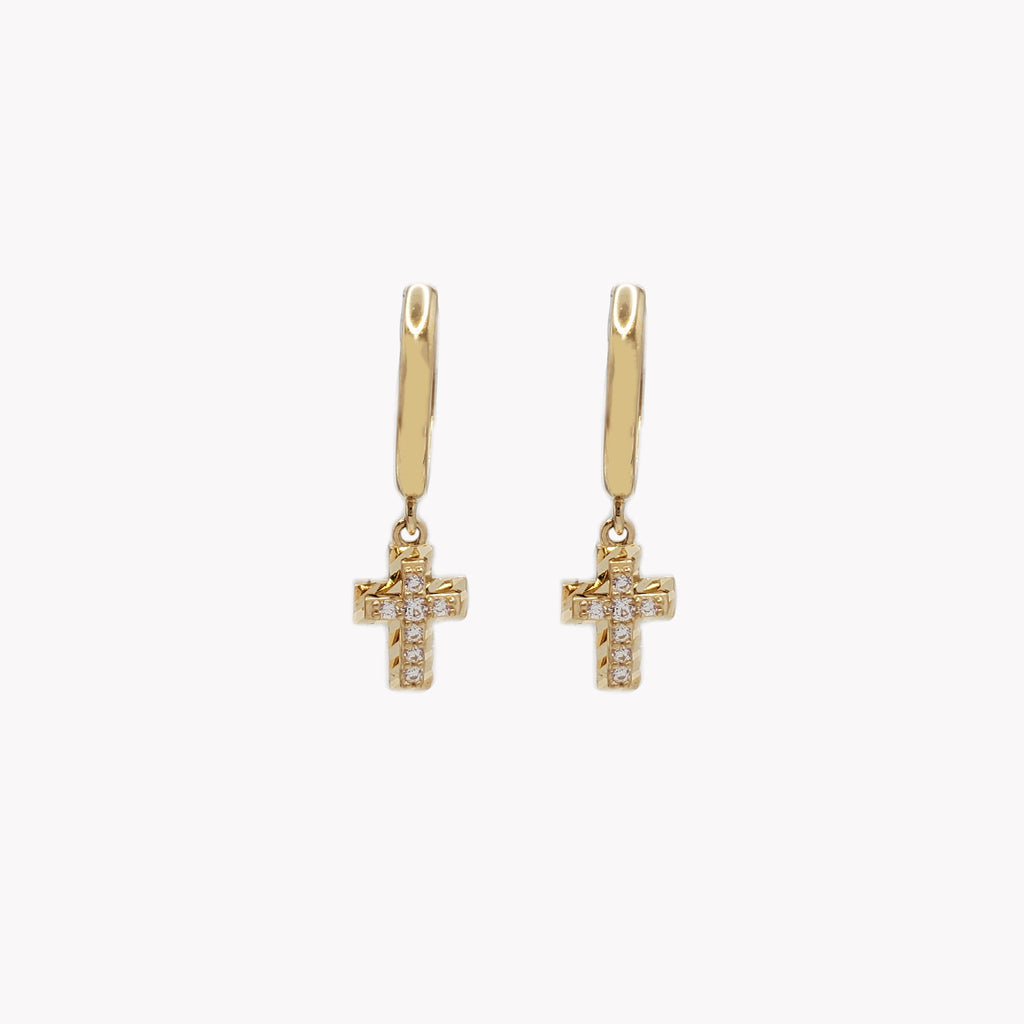 Zirconia Diamond Cut Cross Dangling Earring (14K)