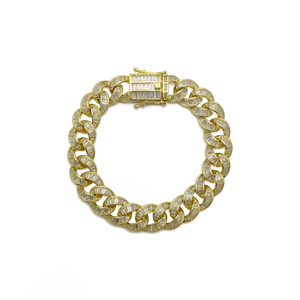 Baguette Iced-Out Miami Cuban Bracelet (Silver)