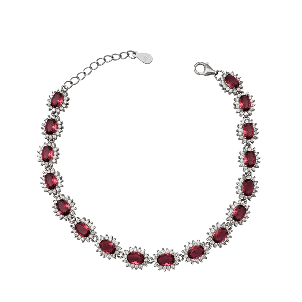 Icy Halo Oval Color-Stone Bracelet (Silver)