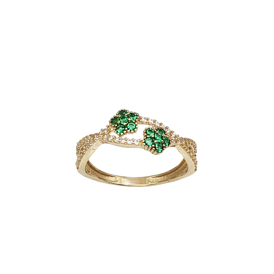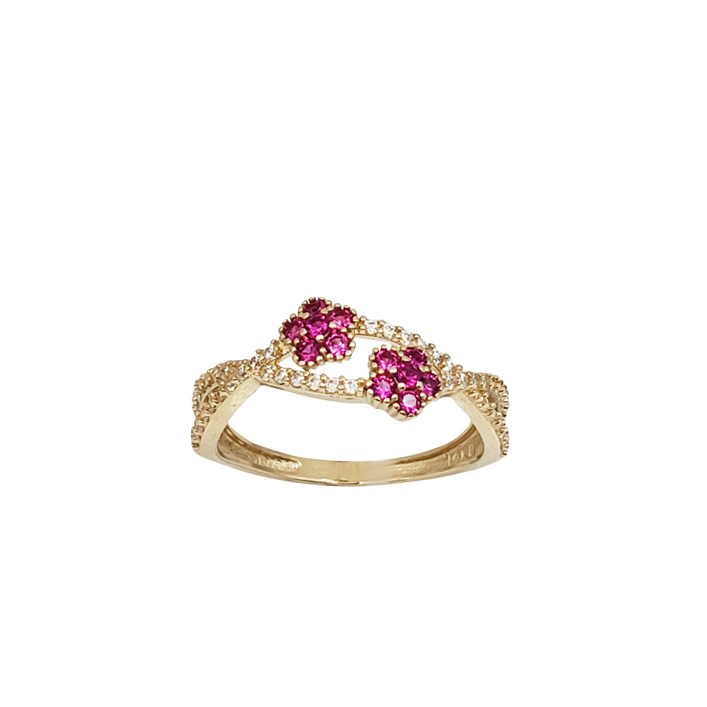 Entwined Zirconia Accent Flower Duo Ring (14K)