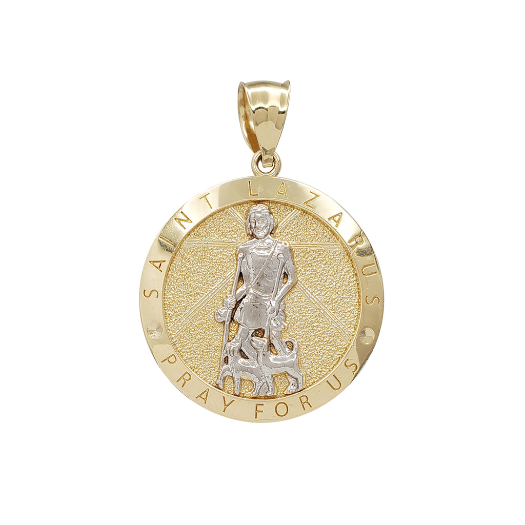 Saint Lazarus Pray for Us Round Medallion Pendant (14K)