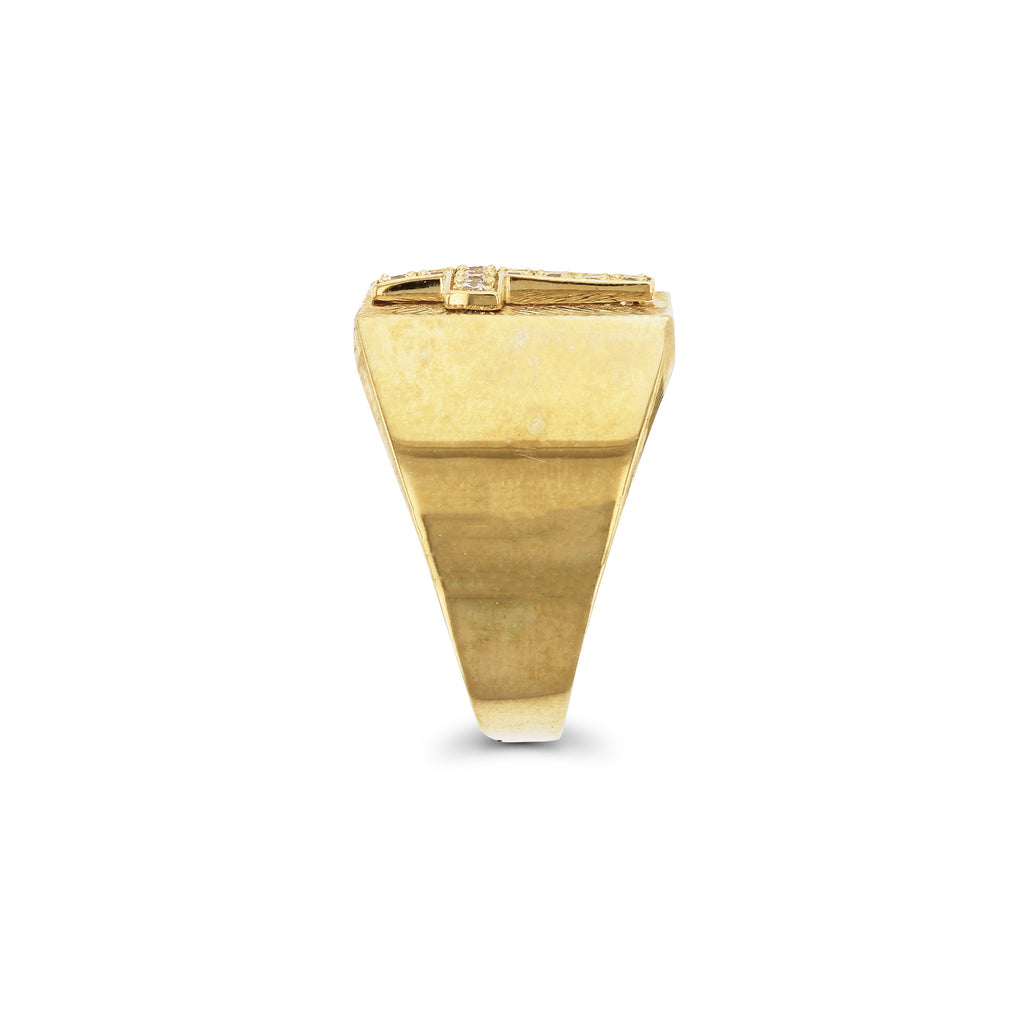 Embosses Stoneset Cross Signet Ring (14K)