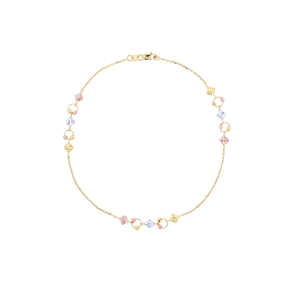 Cable-Link Dainty Charm Accent Anklet (14K)