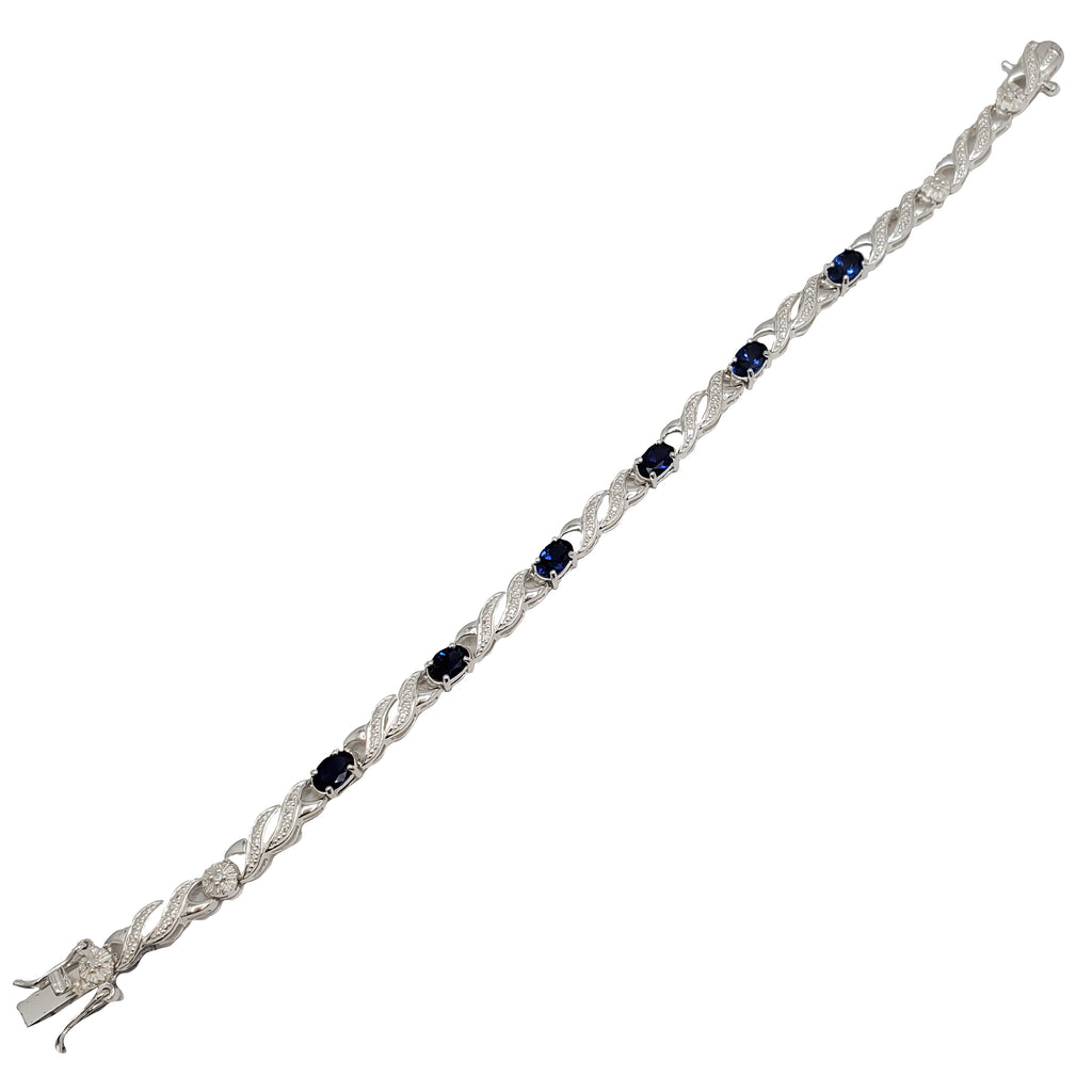 Blue Cubic Zirconia Wave Link Bracelet (Silver)