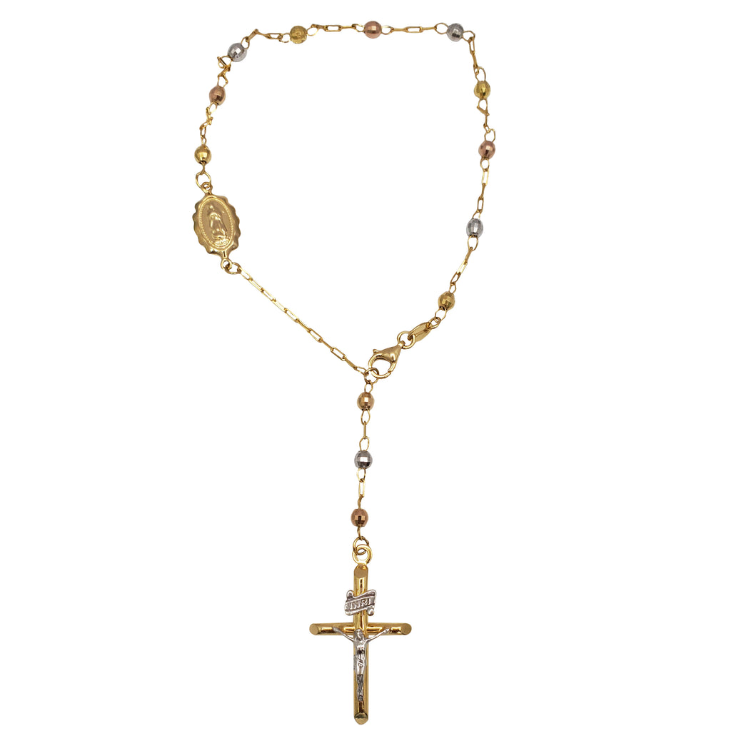 Tricolor Diamond Cut Rosary Bracelet (14K)