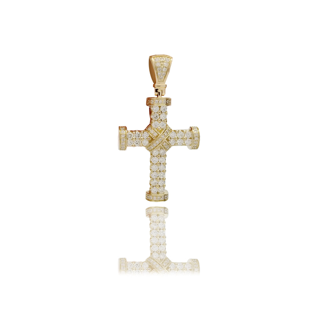 Diamond Wrapped Cross Yellow Gold Pendant (14K)