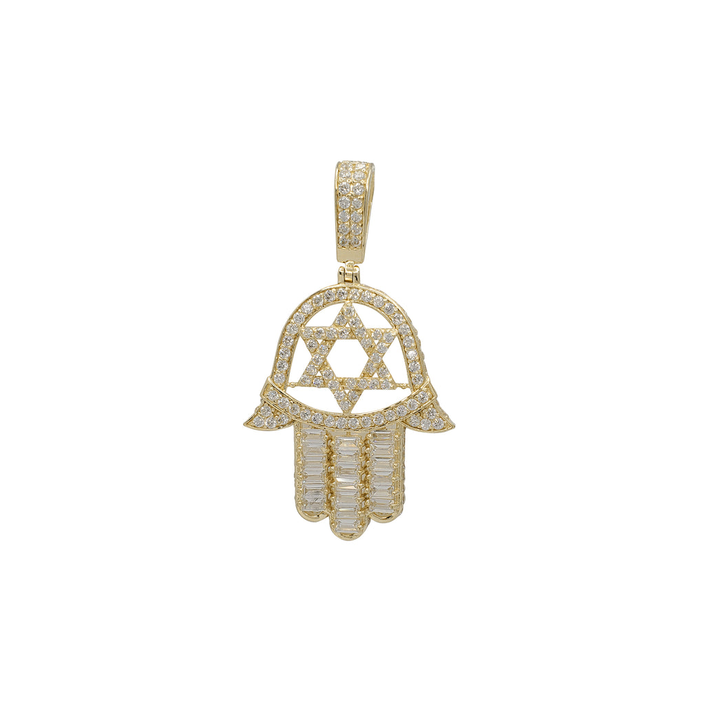 Icy Star of David Hamsa Hand Pendant (14K)