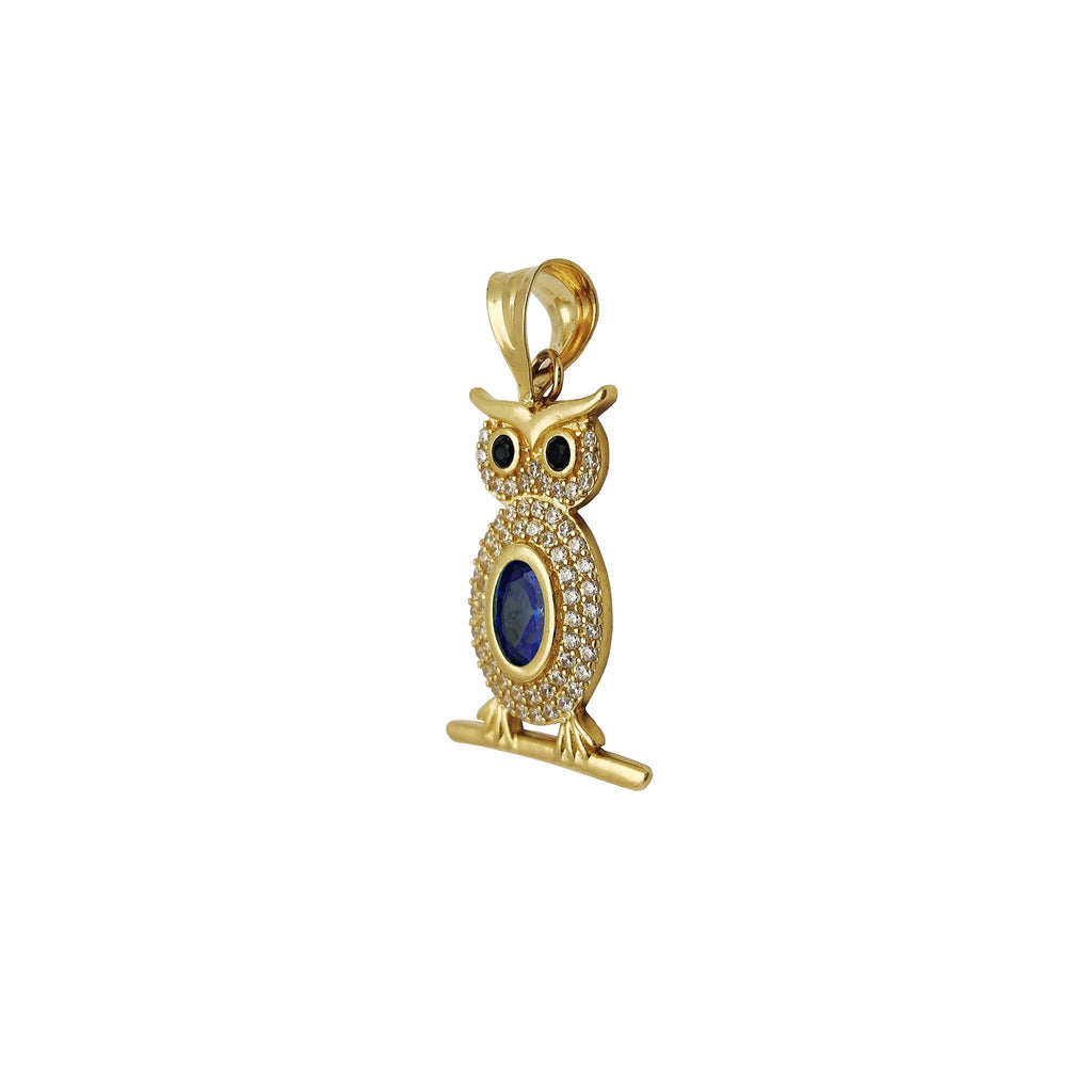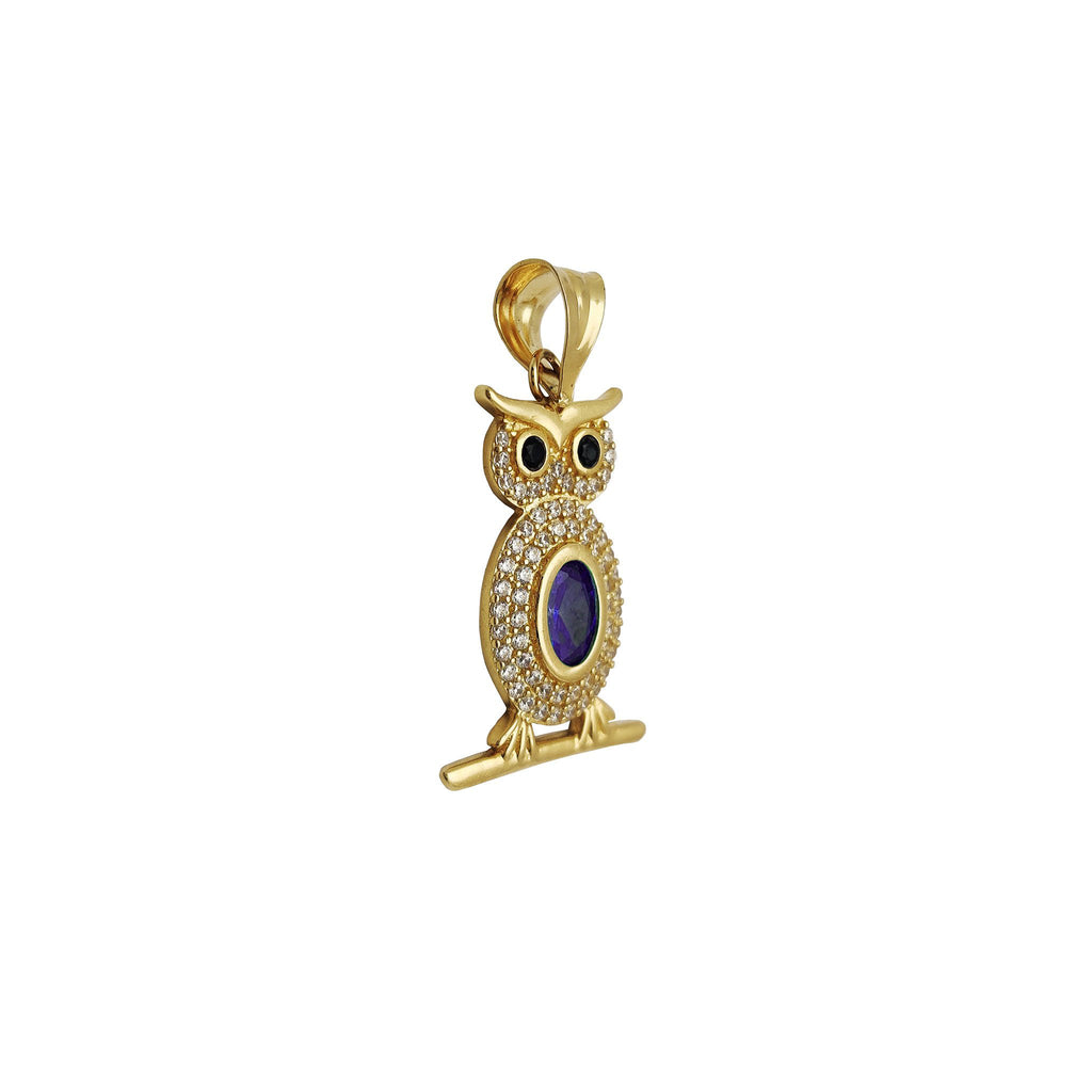Owl Color Stone Pavé Pendant (14K)
