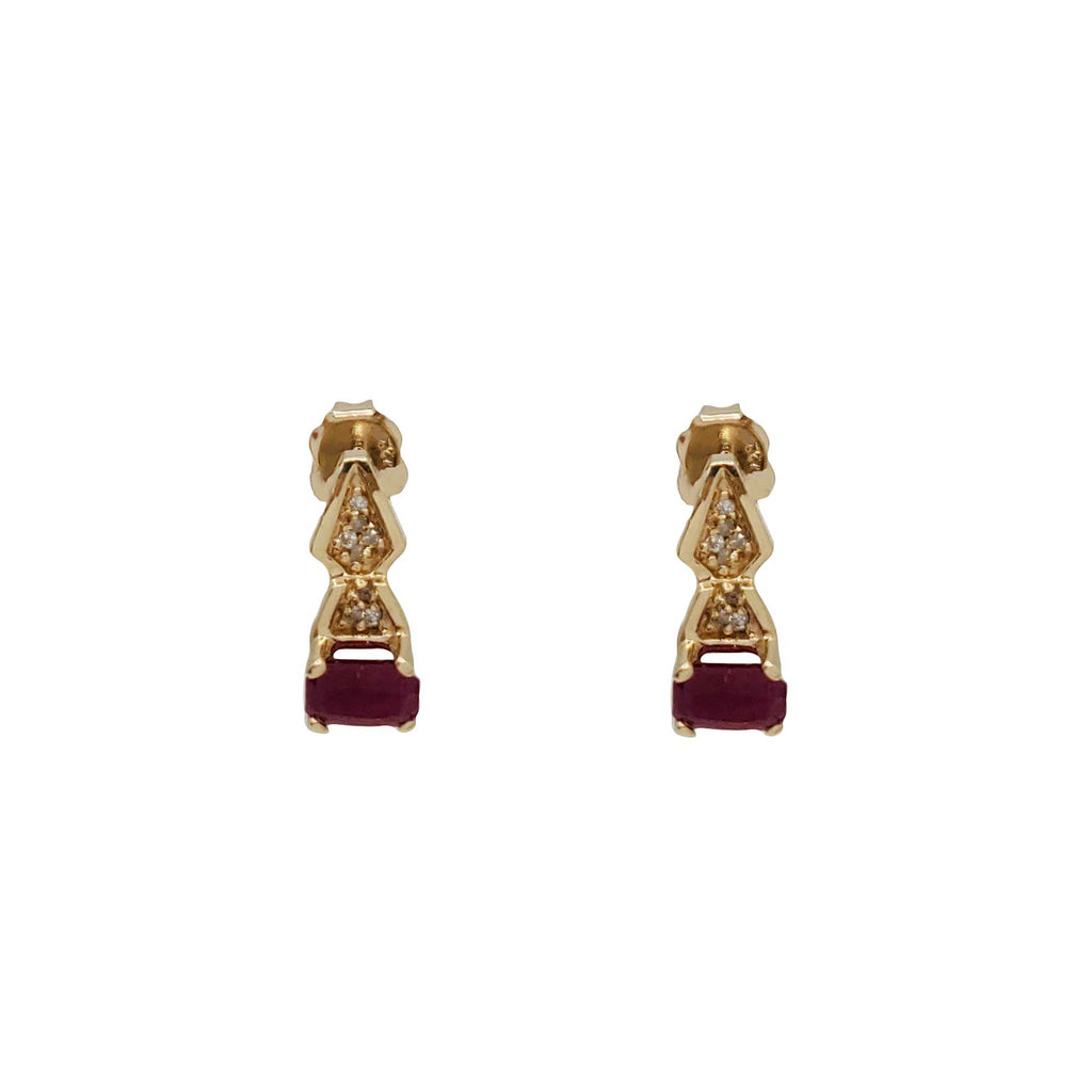Diamond & Ruby Triangle Stud Earrings (14K)