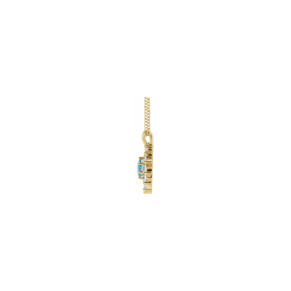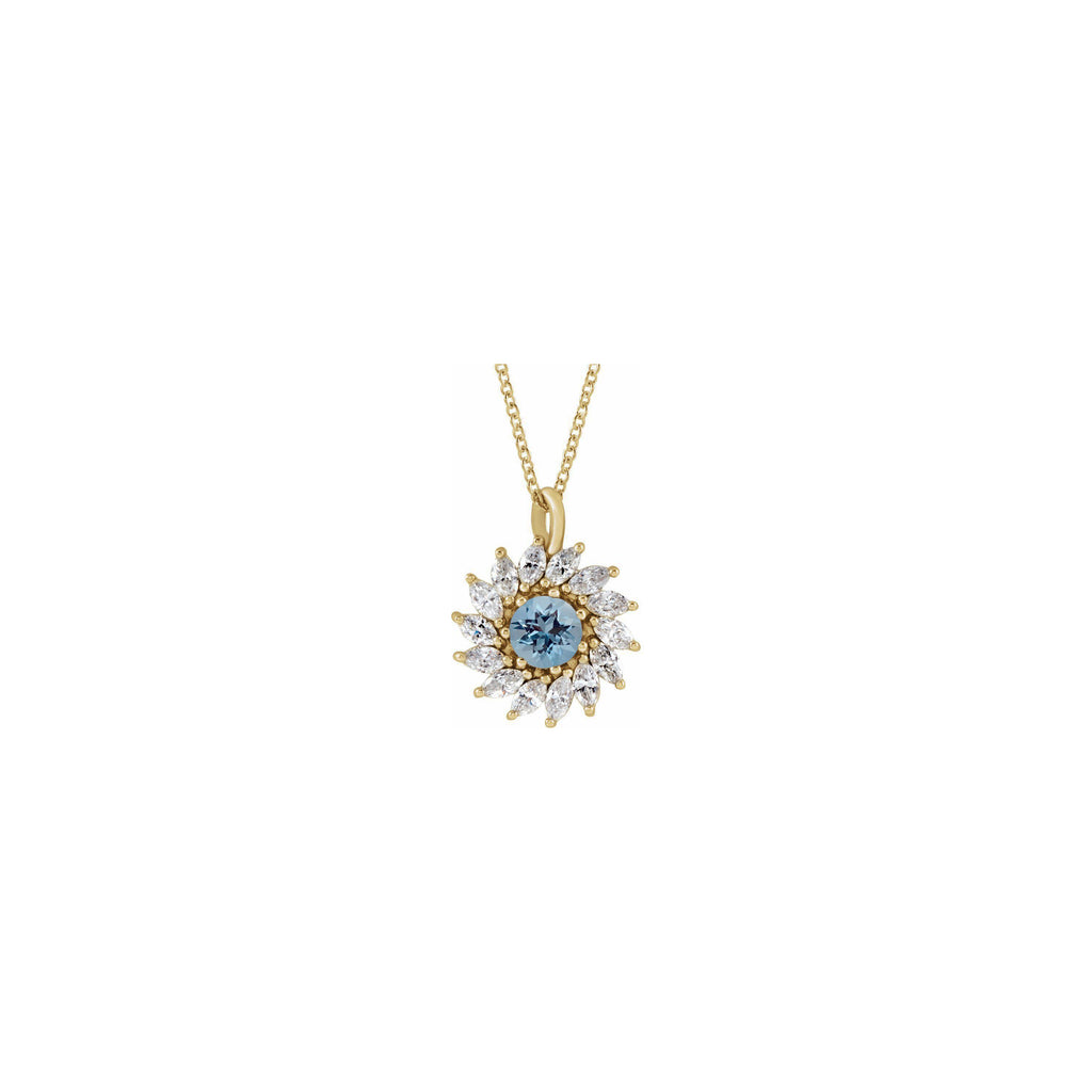 Natural Aquamarine and Marquise Diamond Halo Necklace