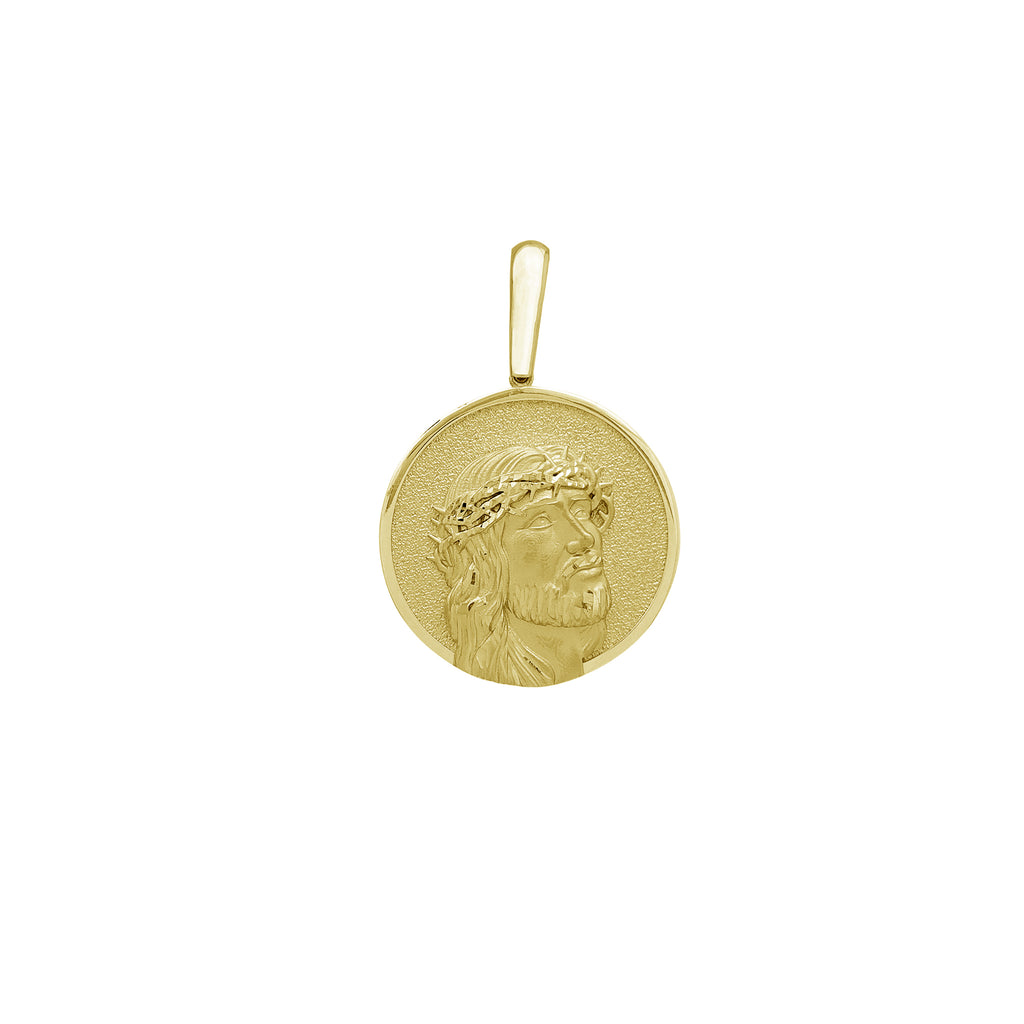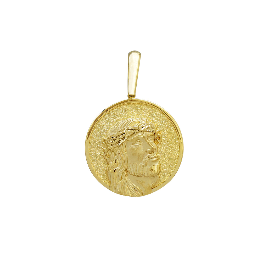 Sandblasted Matte Jesus Head Round Golden Medal Pendant (14K)