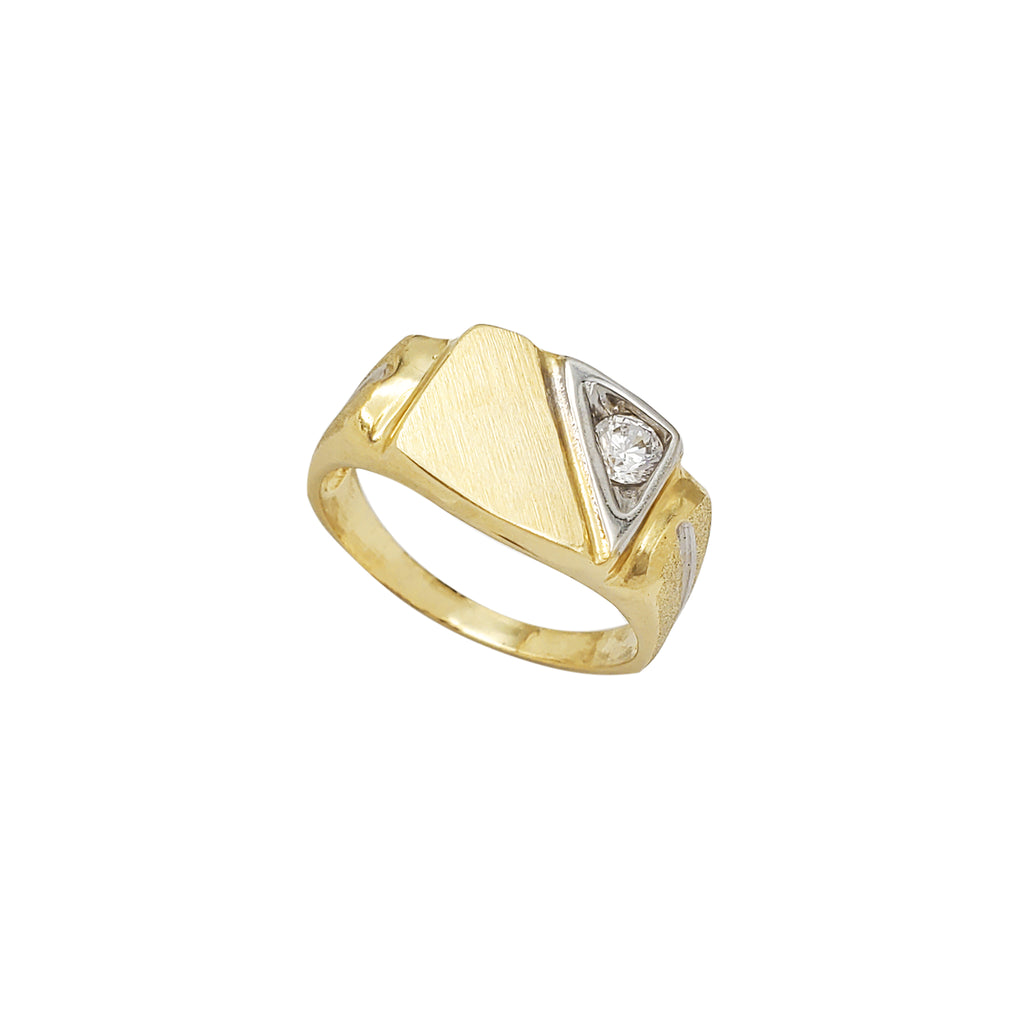 Zirconia Two-Tone Brush-Finish / Sand-Blast Regal Signet Ring (14K)