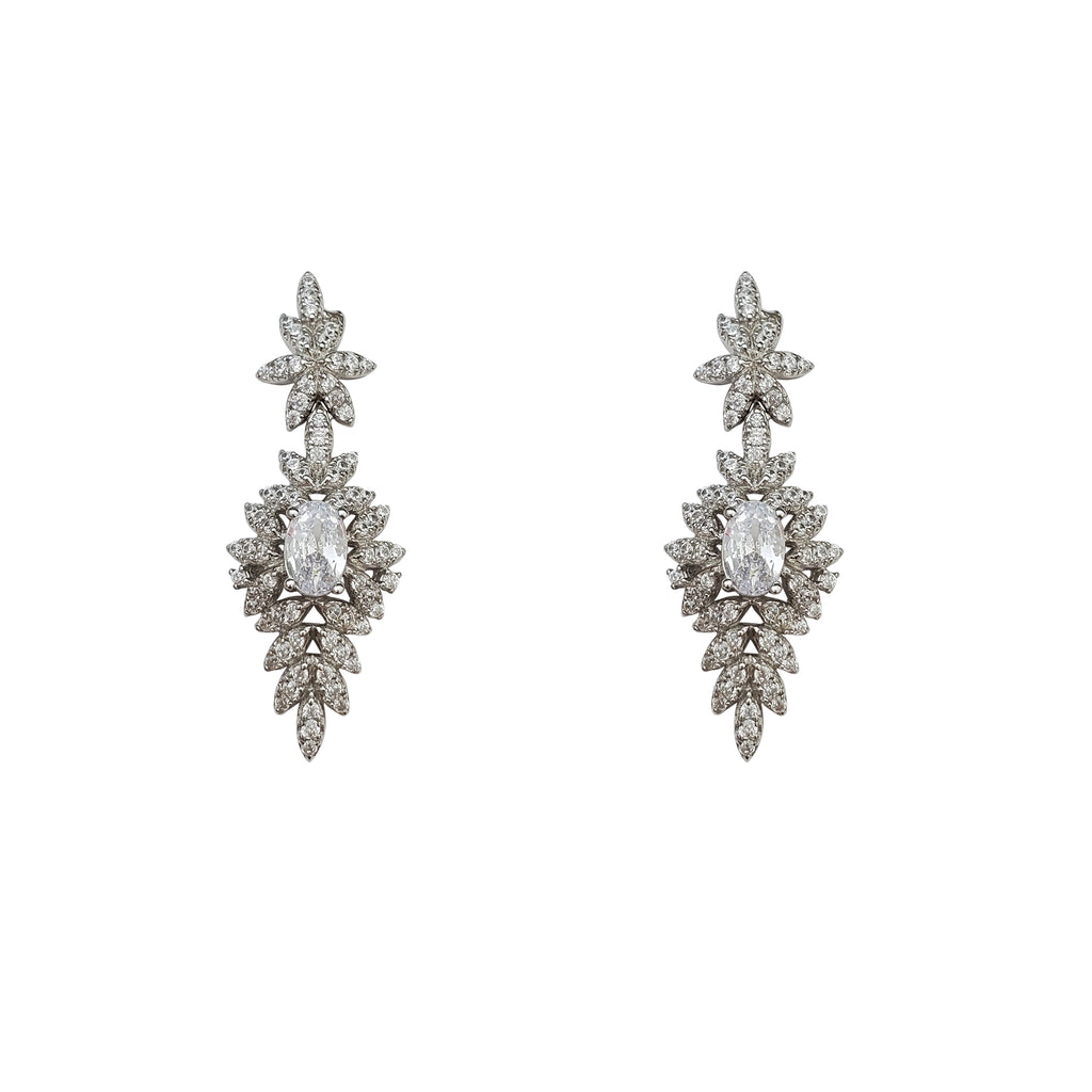 Zirconia Cluster Round & Oval-Shaped Drop Earrings (Silver)