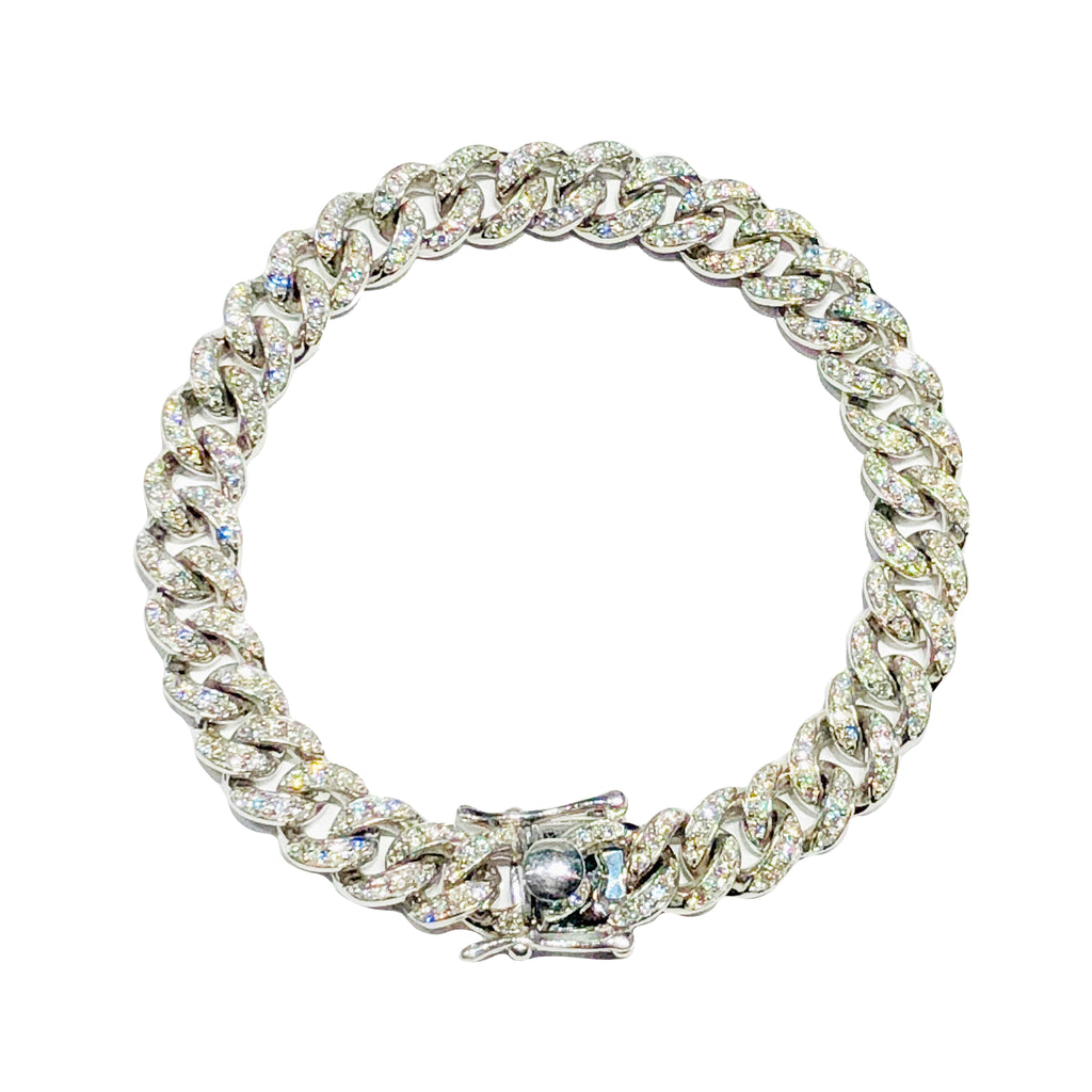 The ice-cold, unforgivably blingy cousin of the Miami-Cuban link bracelet decorated with high quality diamonds. Wearing this extravagant bracelet is but one of the many ostentatious methods to show off your wealth and high taste.