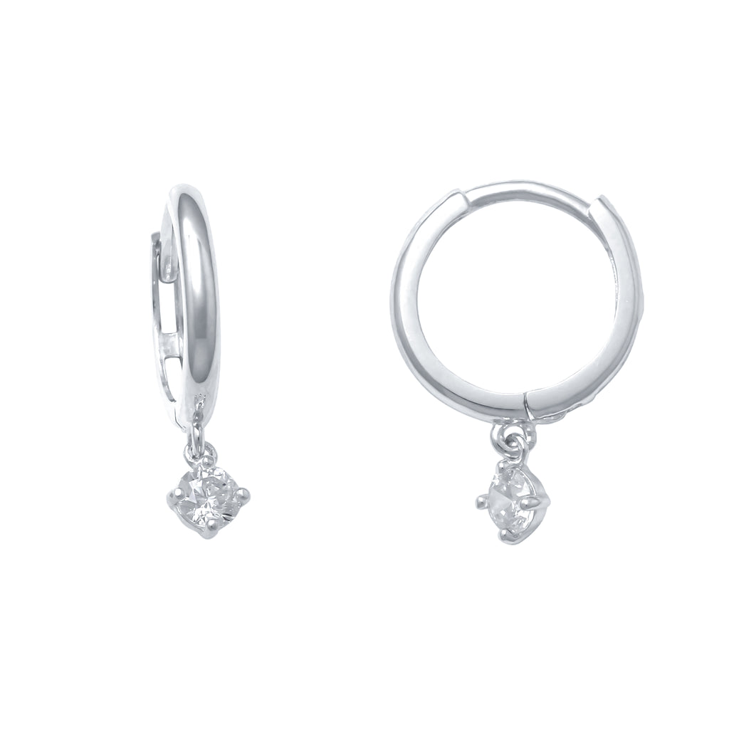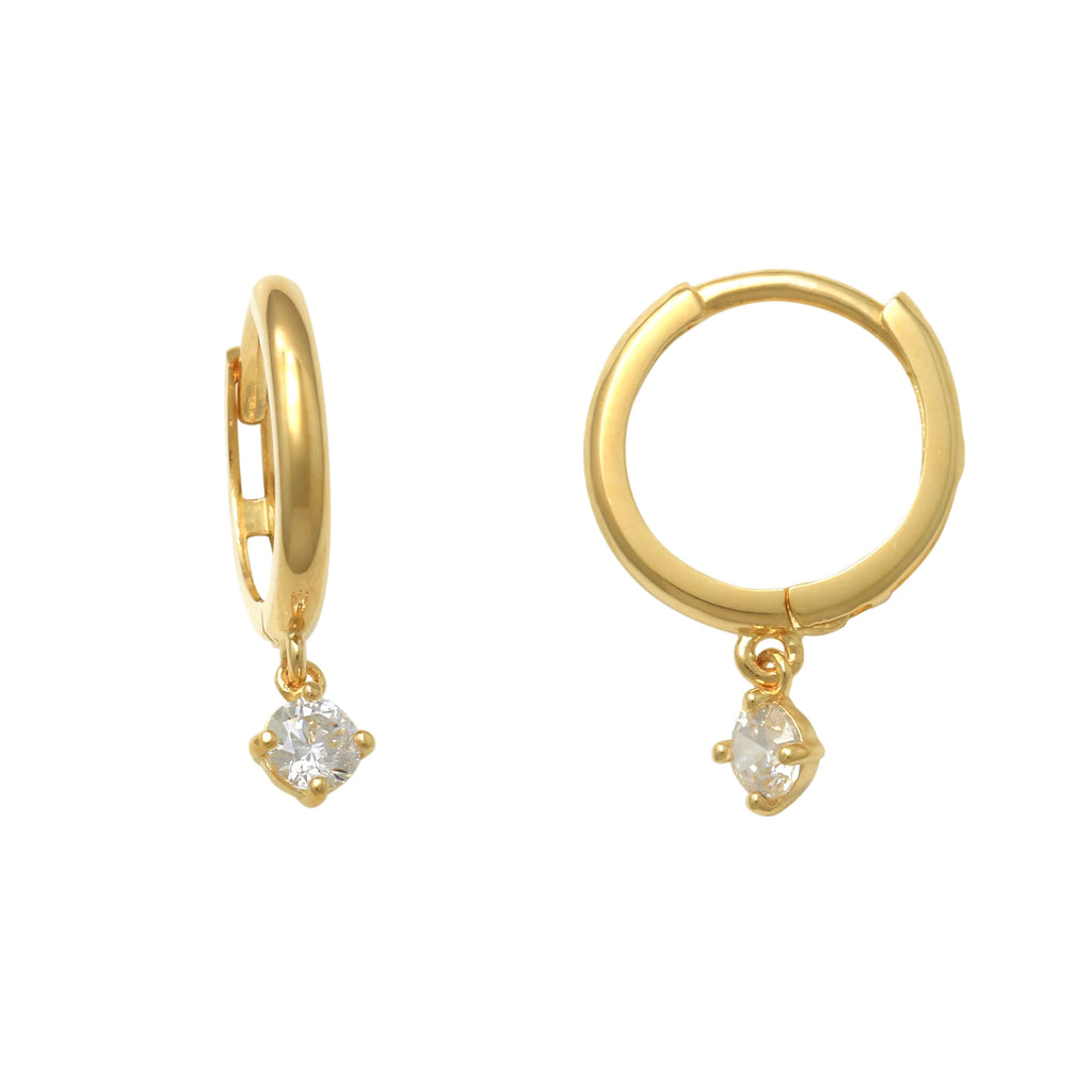 Zirconia Solitaire Hanging Huggie Earrings (14K)