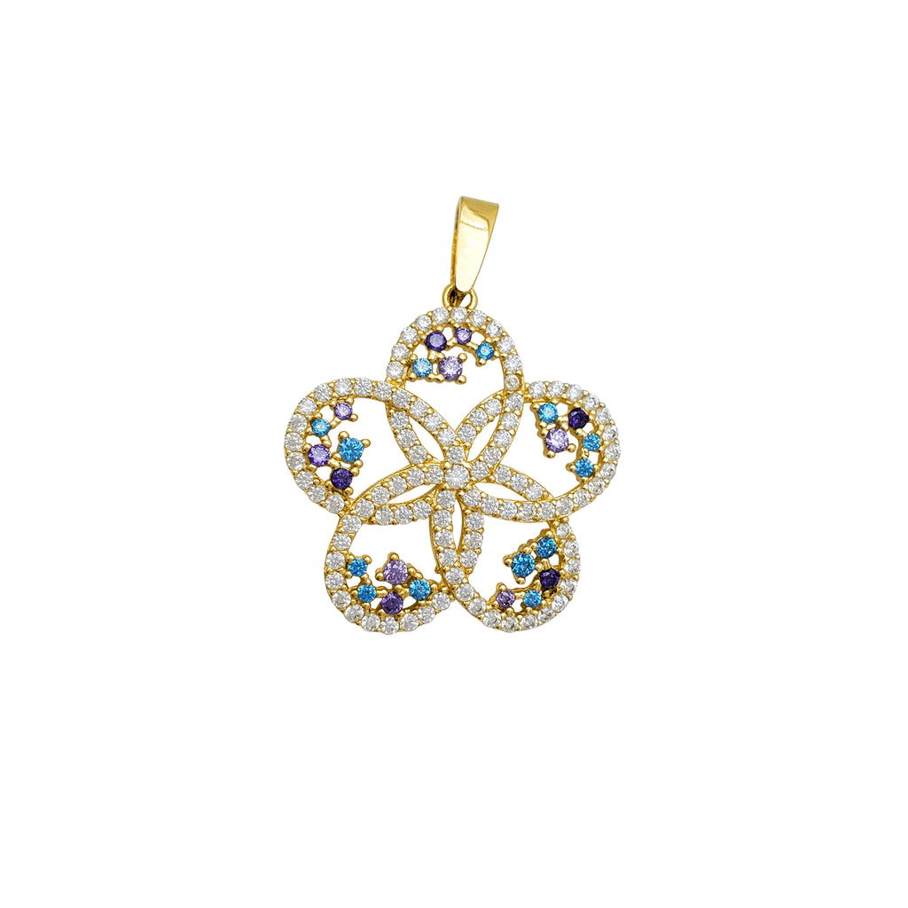 Multi-Color Five-Petaled Flower Pendant (14K)