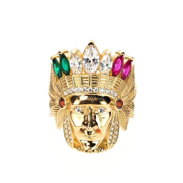 Multicolor CZ Indian Head Ring (14K)