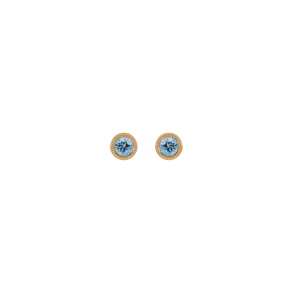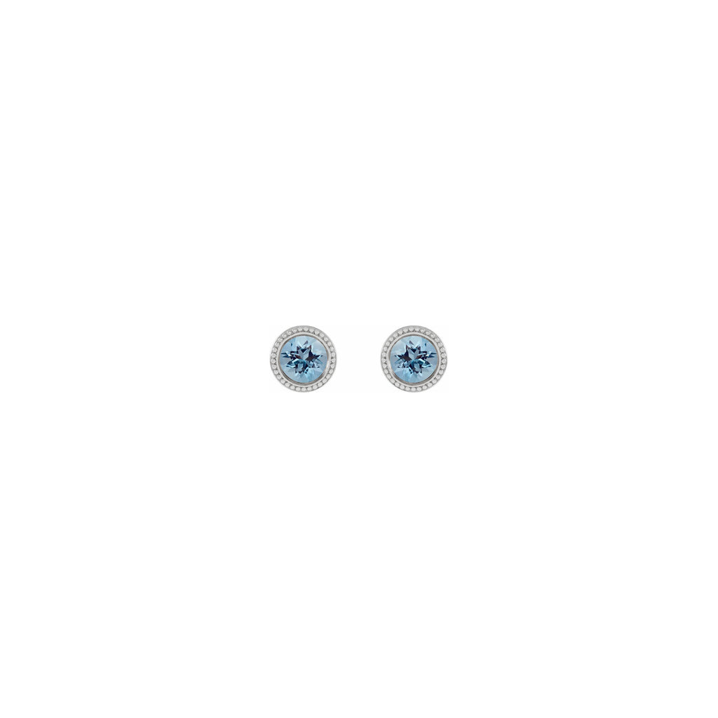 4 mm Round Aquamarine Beaded Halo Stud Earrings