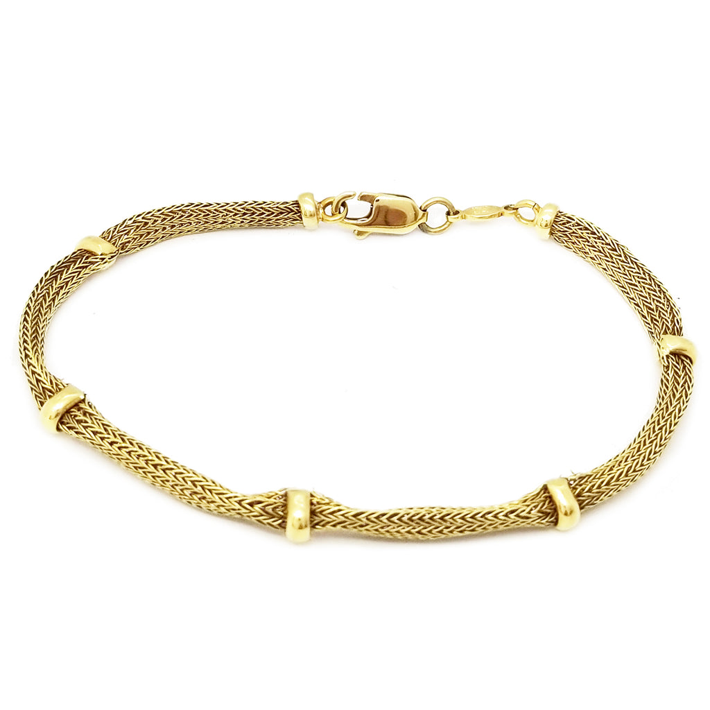 This is a Rope With Knots Yellow Gold Bracelet (14K) made for women who wish to show an elegant mesh see-through bracelet. This piece of art will surely cativate the eyes of many for its unique style and yellow gold color.