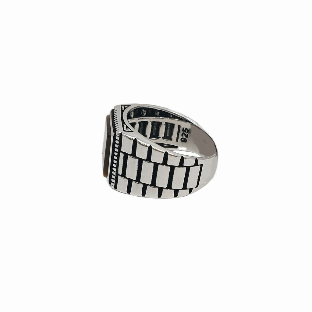 Tiger Eye Agate Stone Watch Ring (Silver)