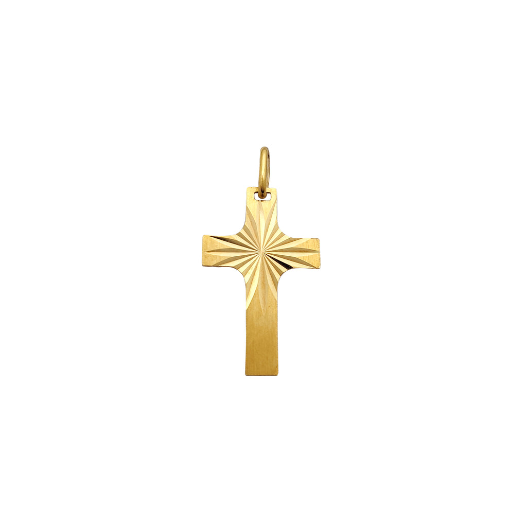 Sunburst Diamond Cuts Cross Pendant (14K)