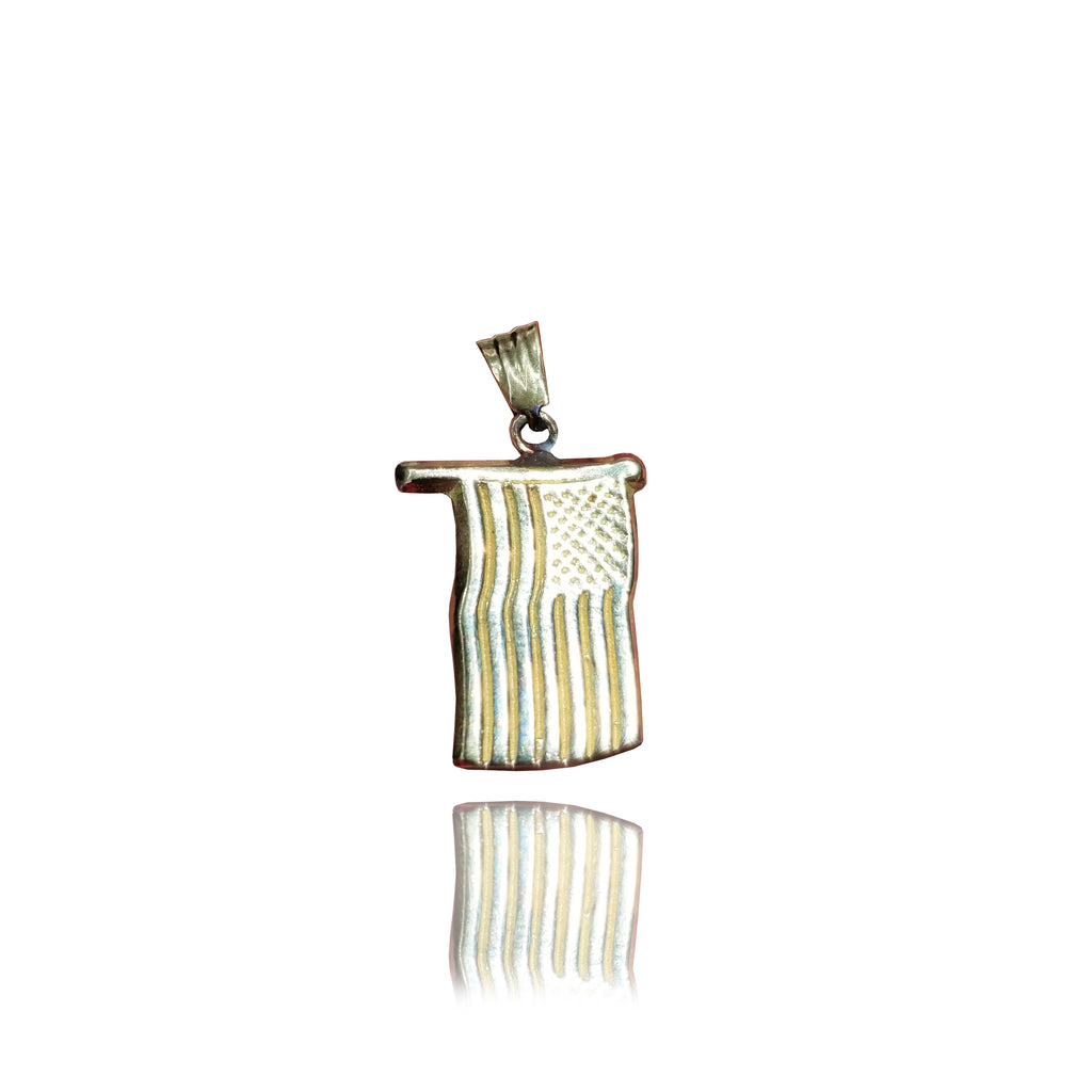 Description: This is a USA Flag Yellow Gold Pendant (14K) made with the highest quality gold metal that has been polished and refined to perfection.