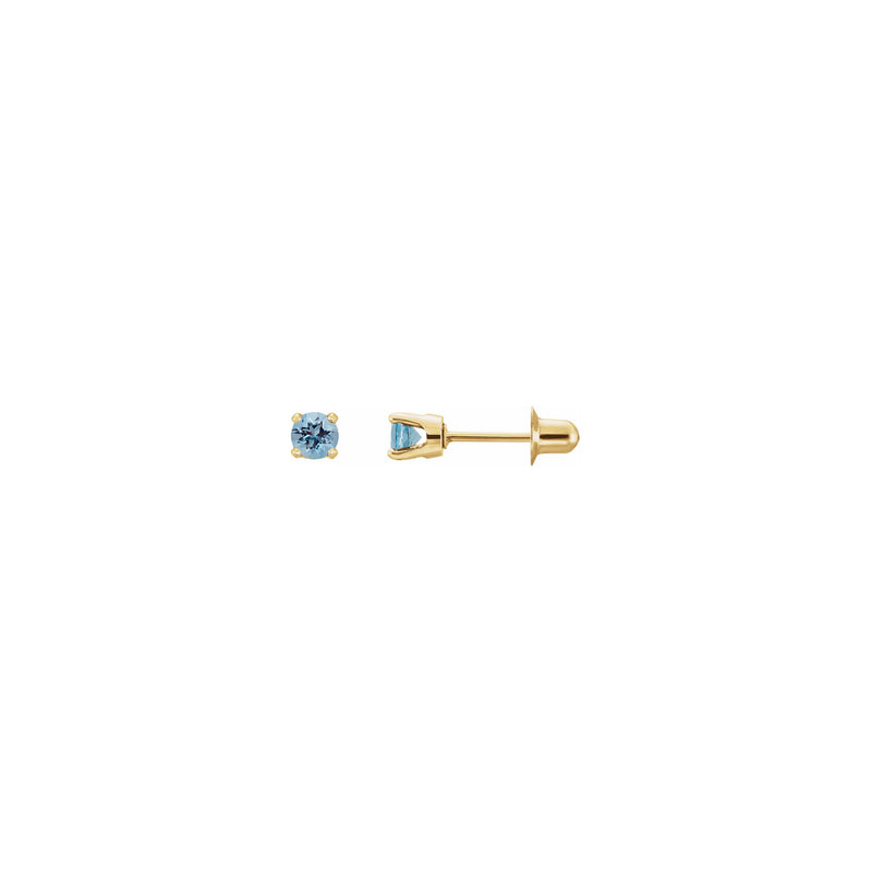 3 mm Round Natural Aquamarine Stud Earrings (14K)