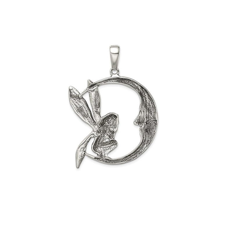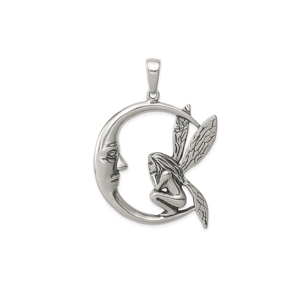 Antique-Finish Moon & Fairy Pendant (Silver)