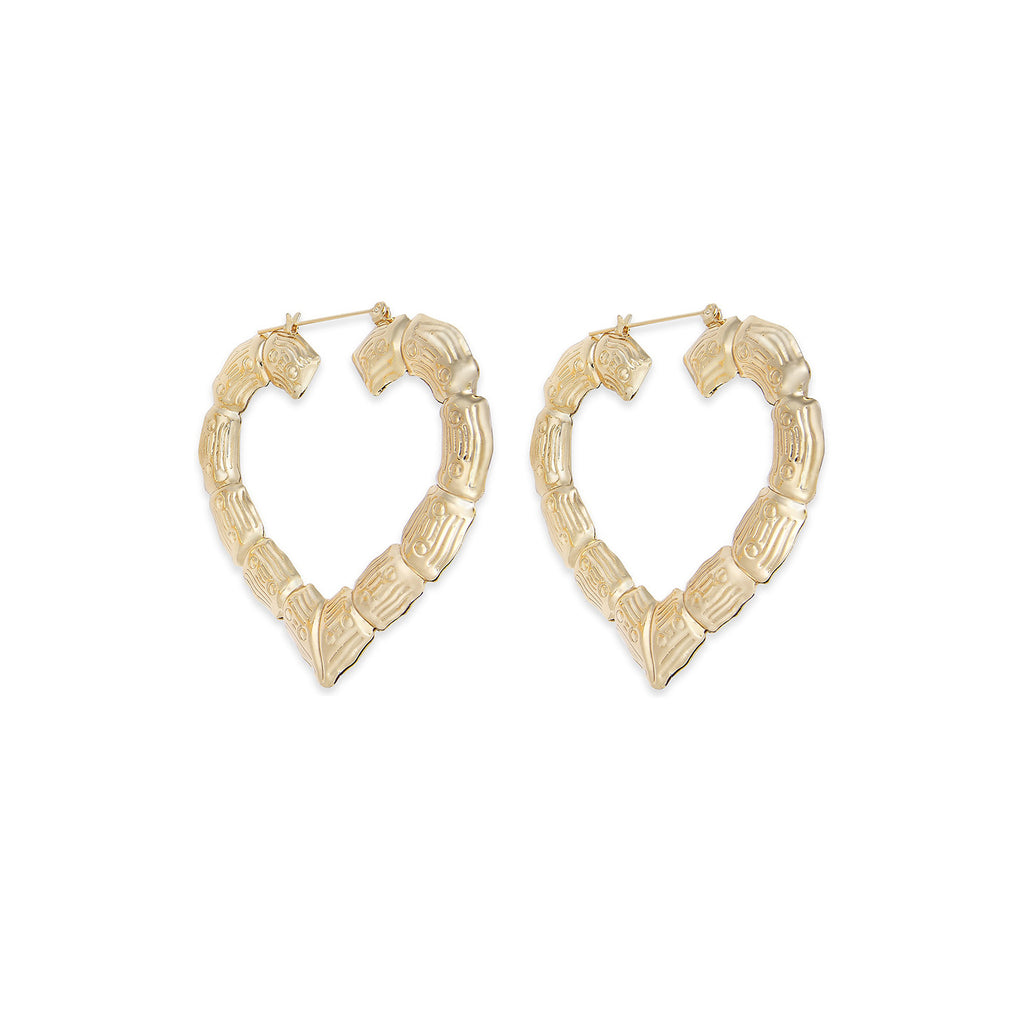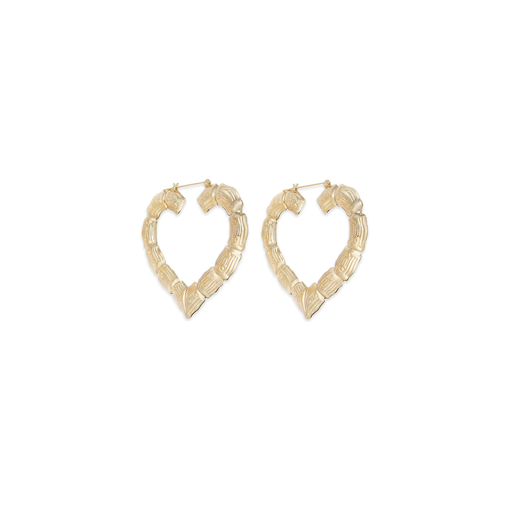 Bamboo Style Hoop Earrings 14 Karat Yellow Gold