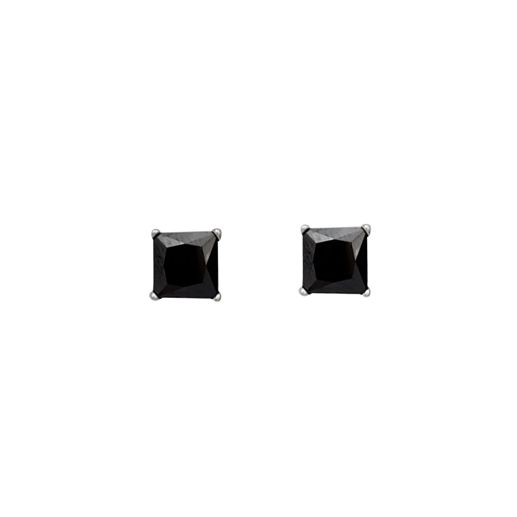 Black Onyx (Princess-Cut) Stud Earring(Silver)