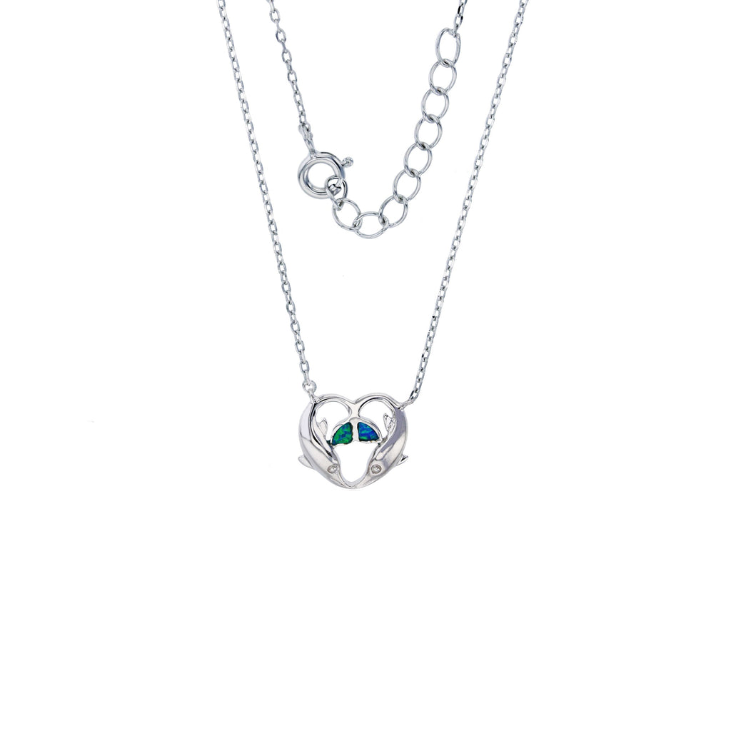 Blue Opal Dolphin Heart Necklace (Silver)
