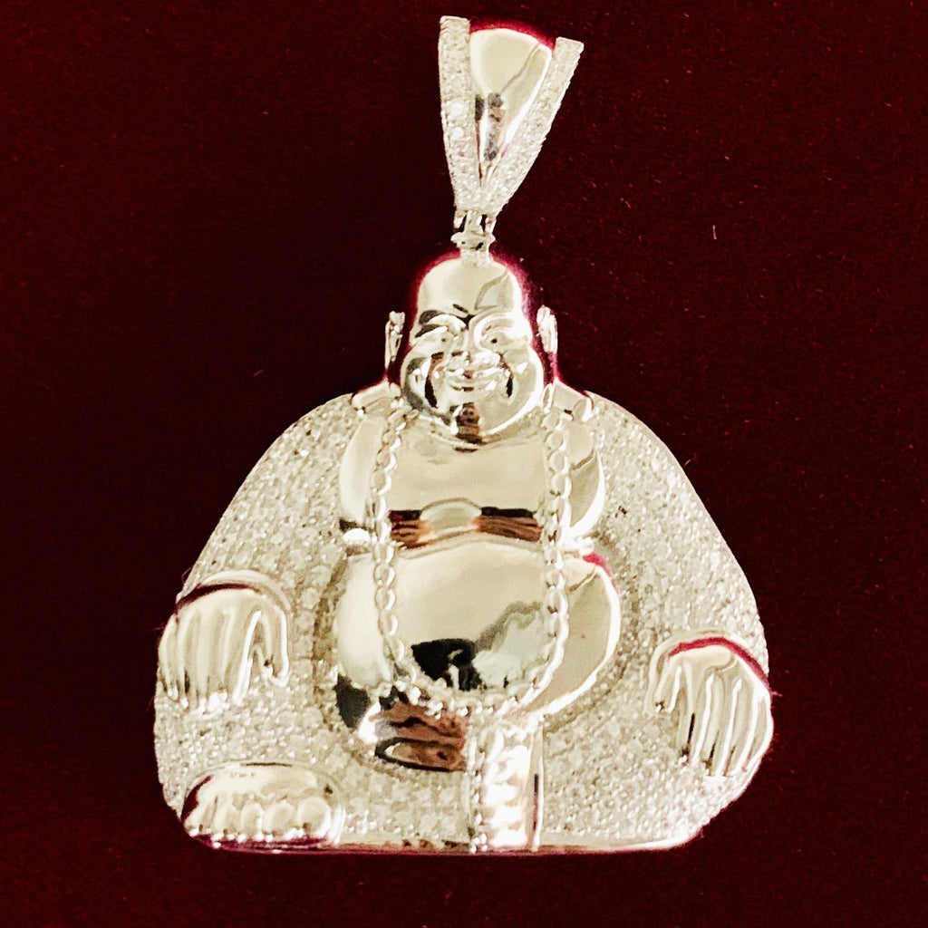 This is a brilliant Buddha pendant with cubic zirconia.
