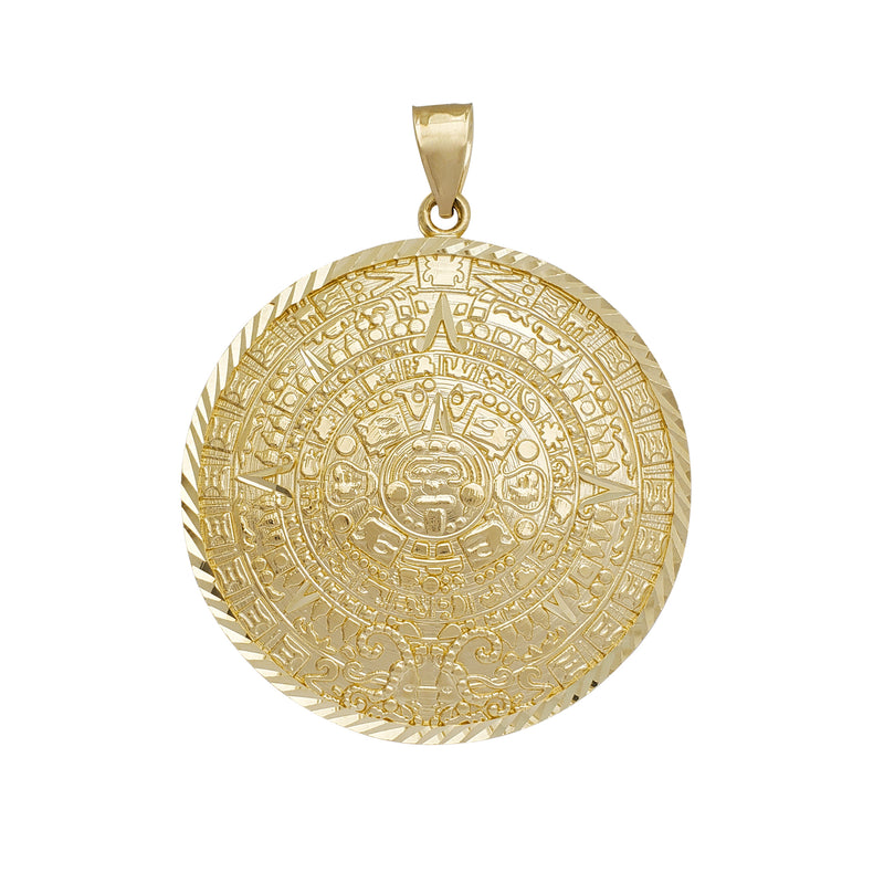 Convex Diamond-cut Aztec Sun Calendar Pendant (14K)