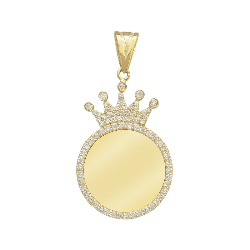 Diamond Crowned Round Picture Medallion Pendant (14K)