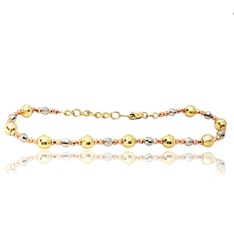 Diamond Cut Bead Ball Tri-Color Gold Bracelet (14K).