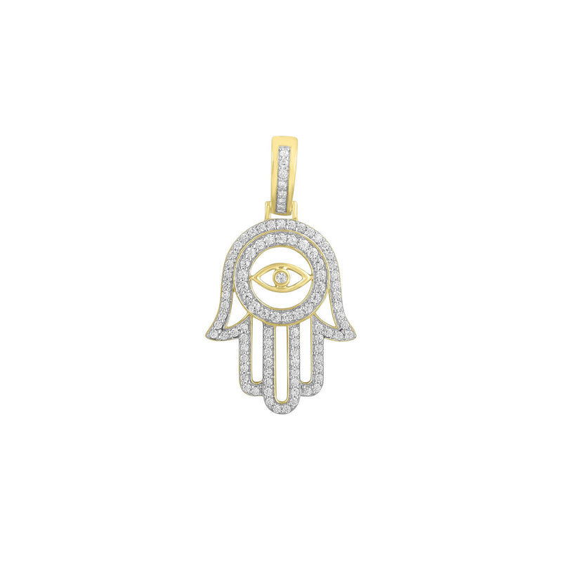 Diamond Evil Eye Hamsa Hand Pendant (14K)