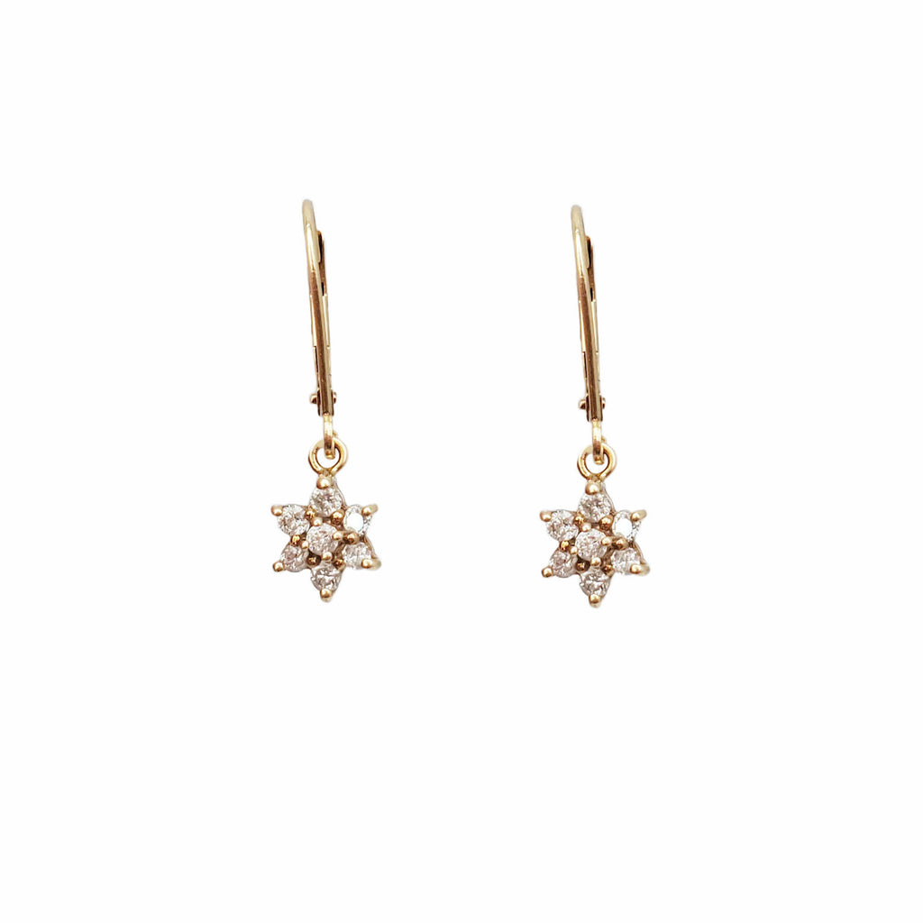 Diamond Flower Dangling Earrings (14K)