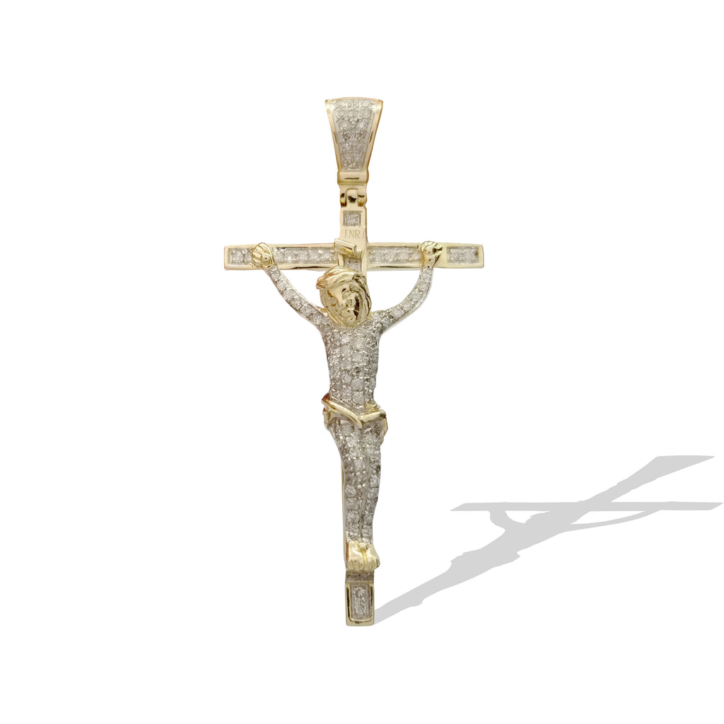 Description: This is a Diamond Jesus Christ Cross Two-Toned Gold Pendant (10K) made with the highest quality metal that has been polished and refined to perfection.