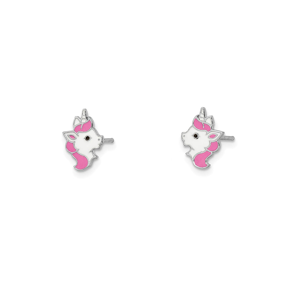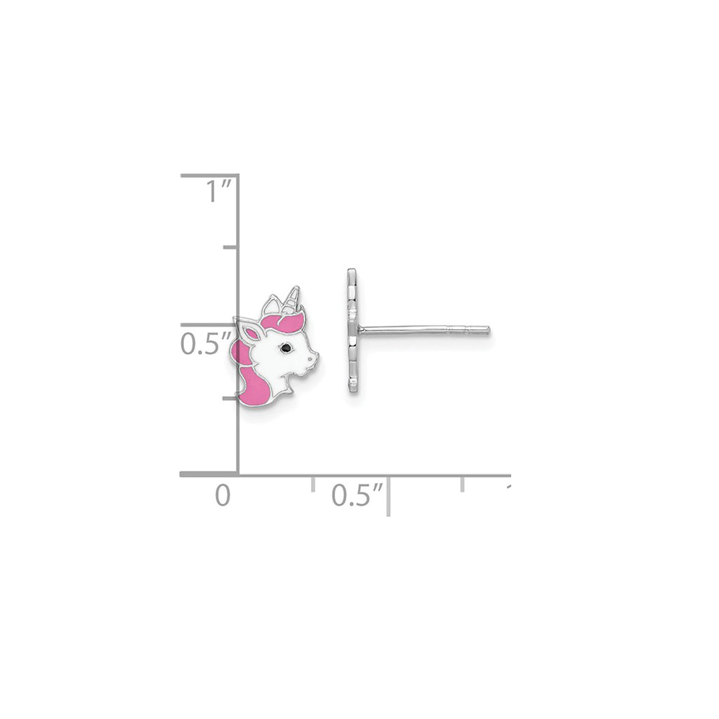 Enamel Pink Head Unicorn Stud Earrings (Silver)
