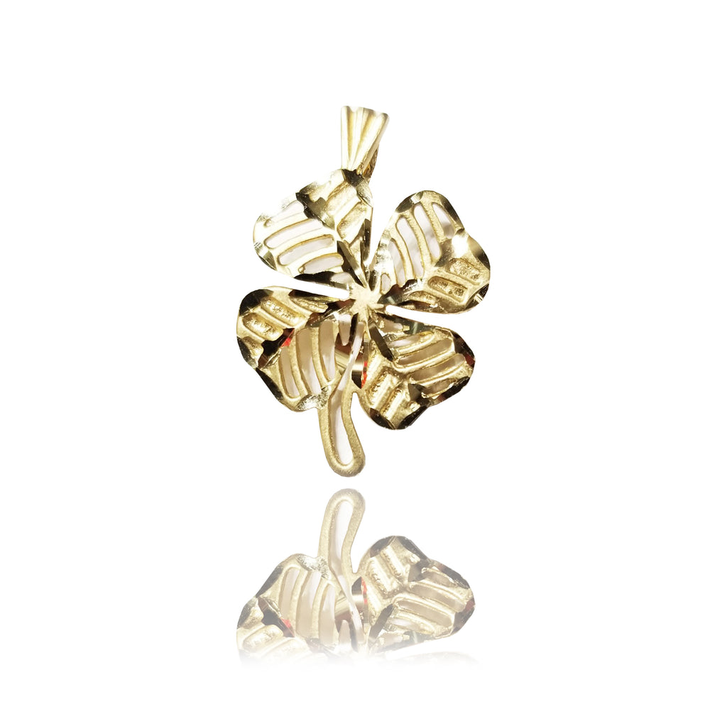 High quality one of a kind Lucky Four Leaf Clover Yellow Gold Pendant (14K).