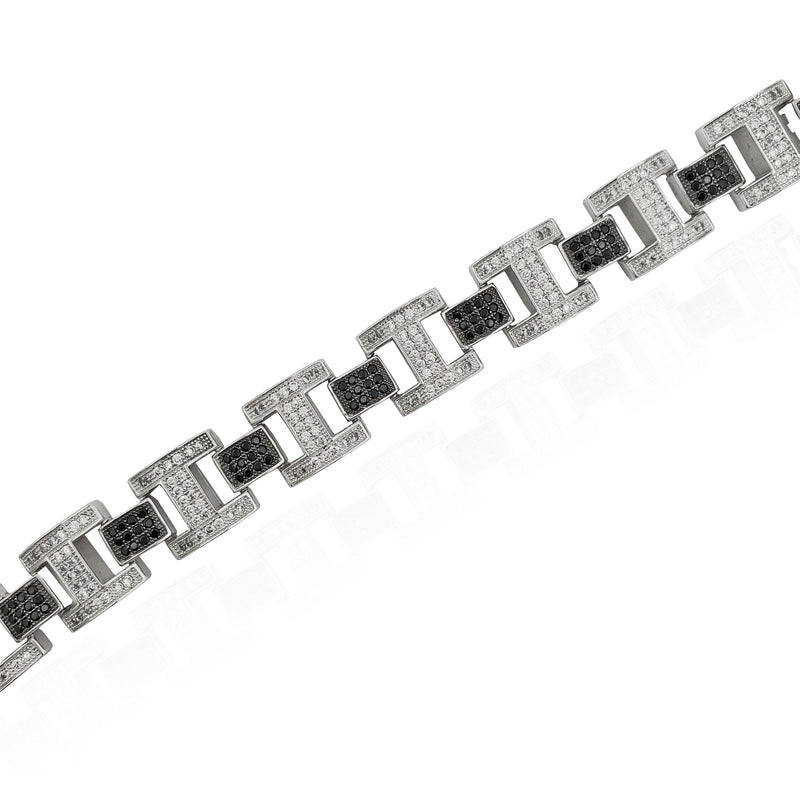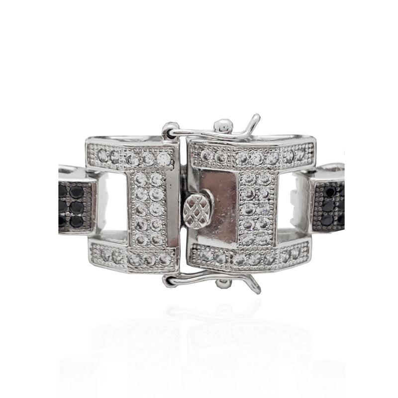 Iced-Out Black & White Buckle Link Bracelet (Silver)