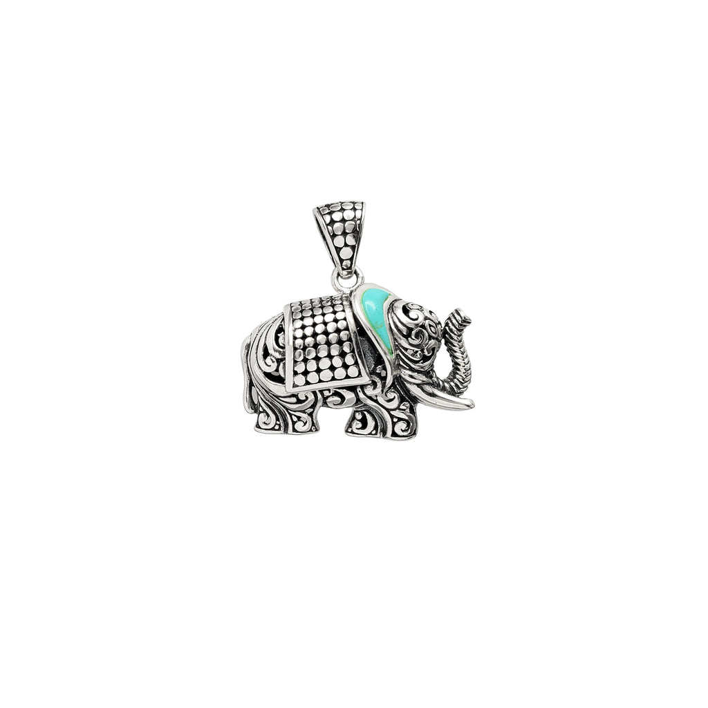 Howlite Antique-Finish Elephant Pendant (Silver)