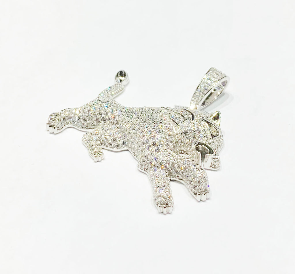 This is a brilliant Hyena pendant with cubic zirconia stones.
