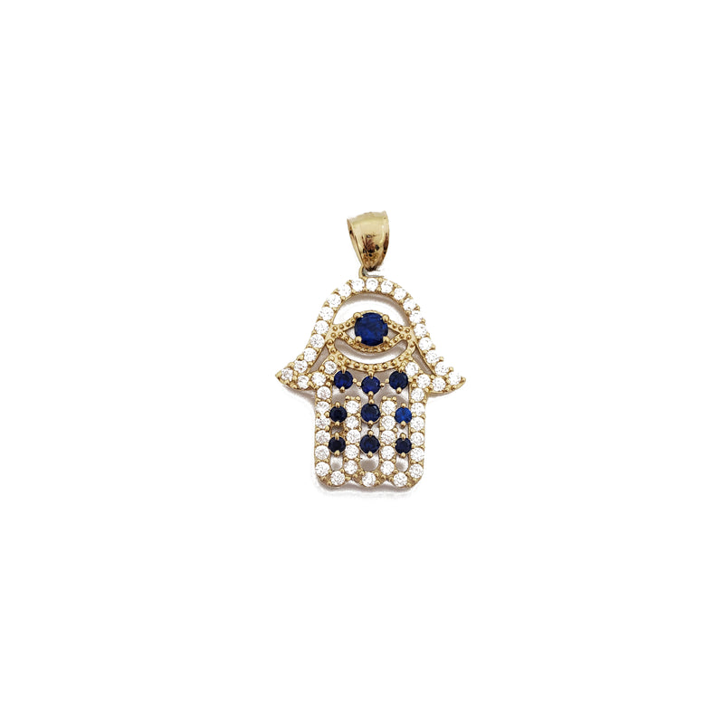 Iced-Out Hamsa & Evil Eye Pendant (14K)