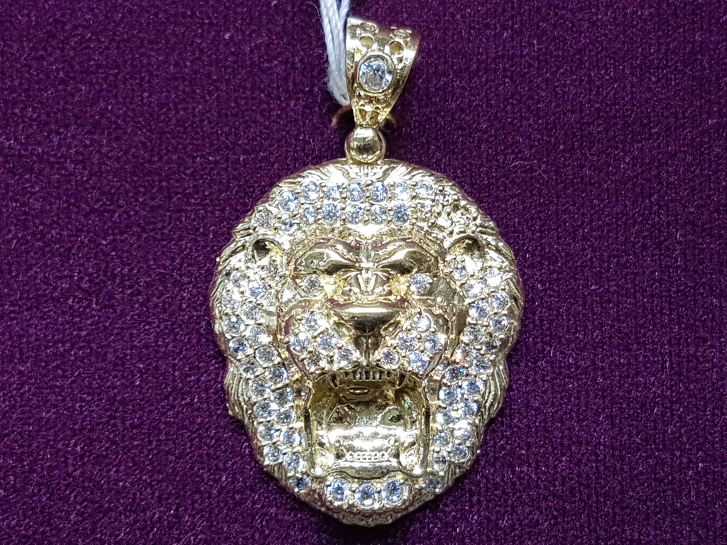 Iced-Out Lion Head Pendant (14K)