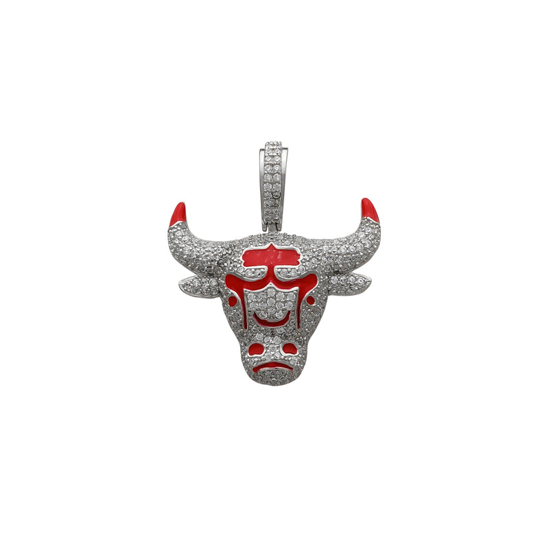 Iced-Out Red Textured Bull Head Pendant (Silver)