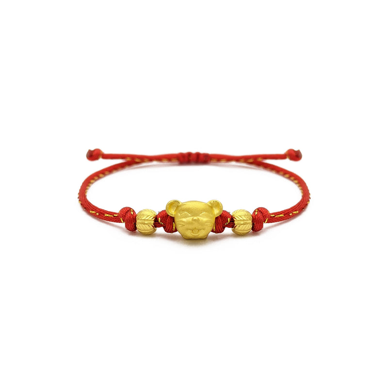 Joyful Rat Chinese Zodiac Red String Bracelet (24K)