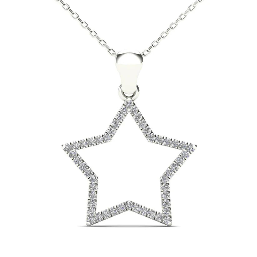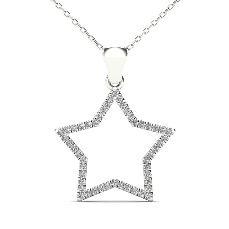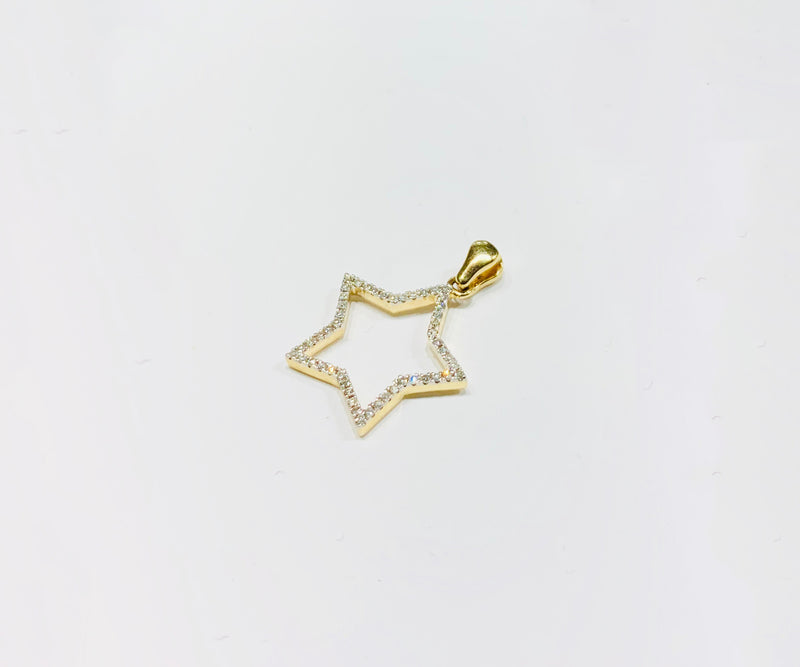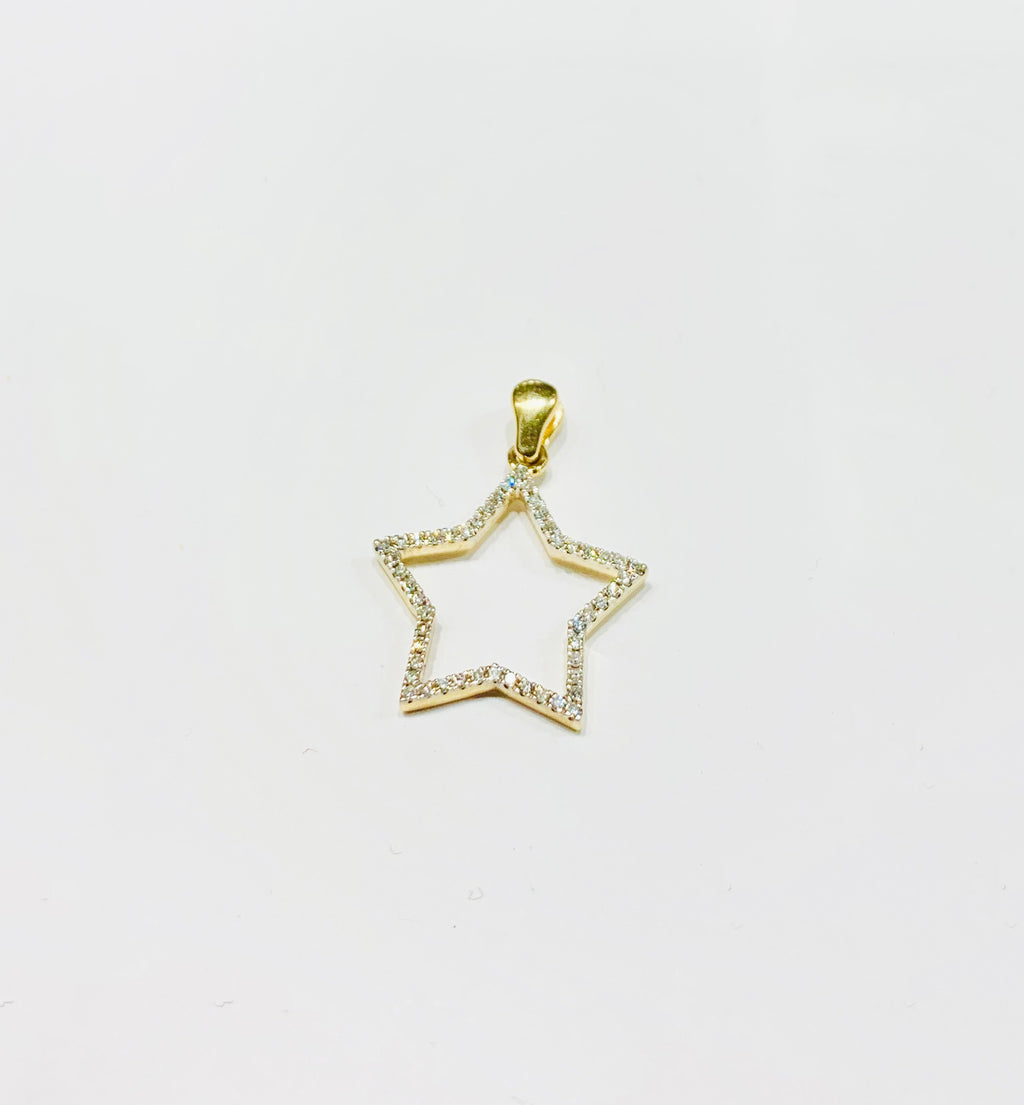 A little outline of a symmetric star is ornamented with beautiful petite round white diamonds.