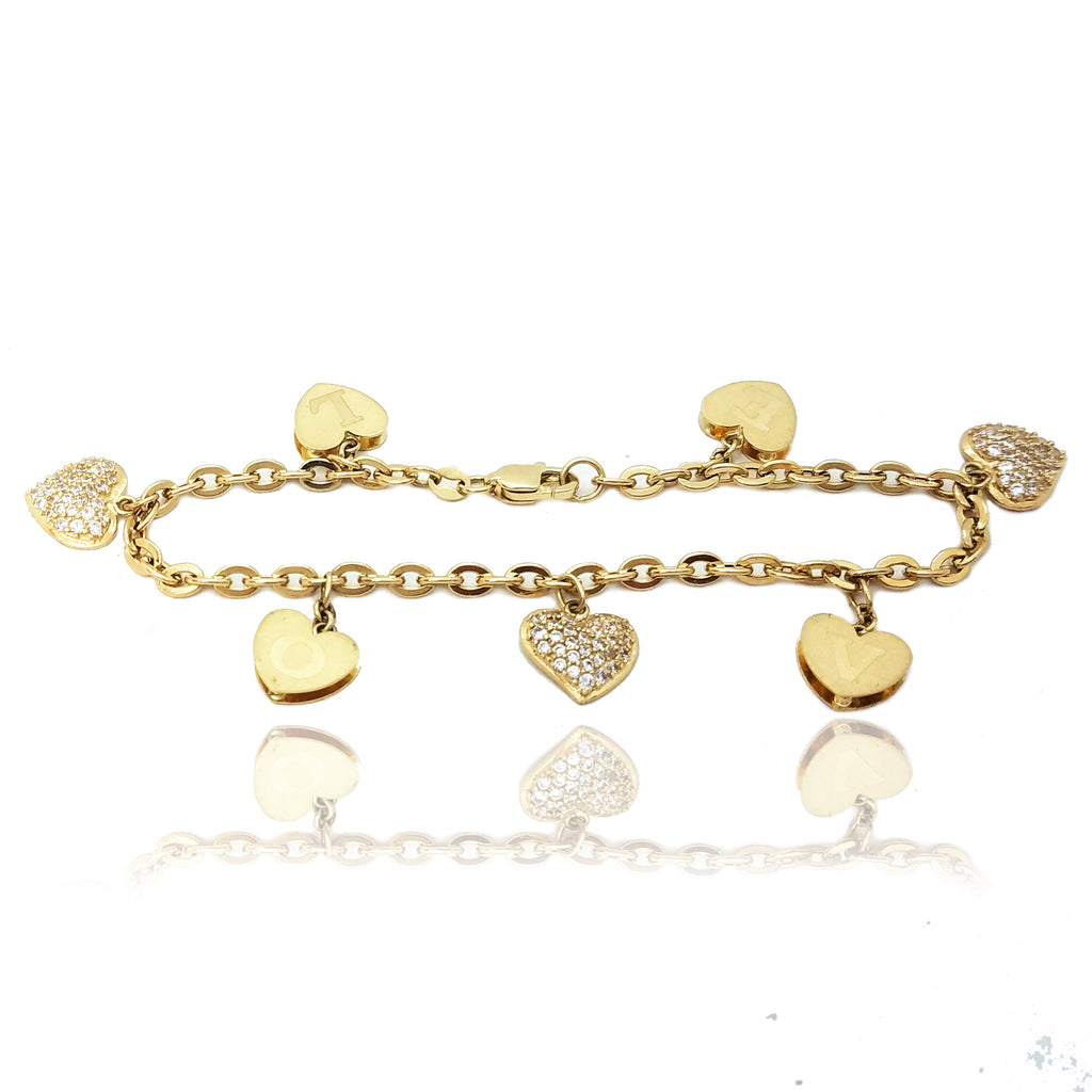 LOVE With Heart Charms Tri-Color Gold Bracelet (14K).