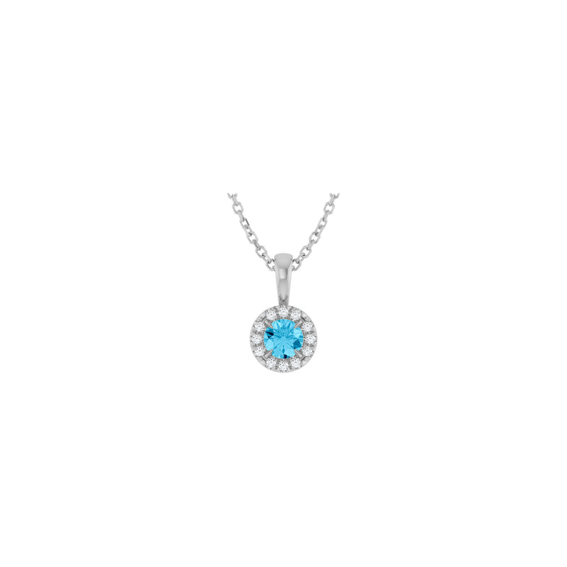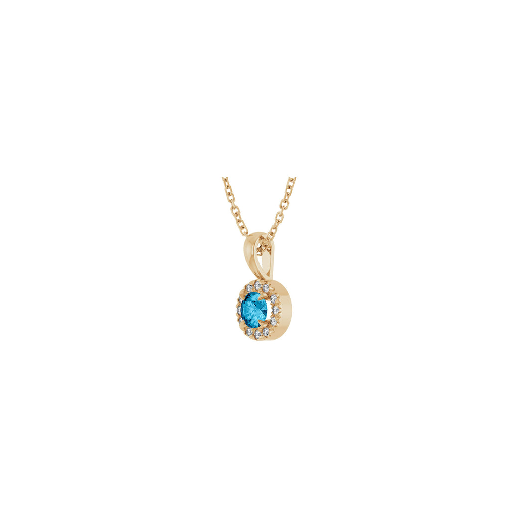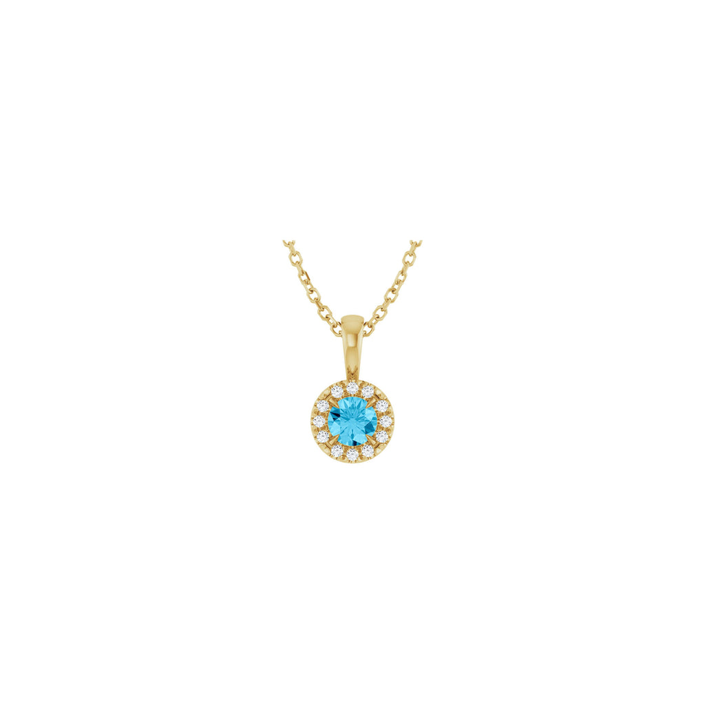 Natural Round Aquamarine and Diamond Halo Necklace